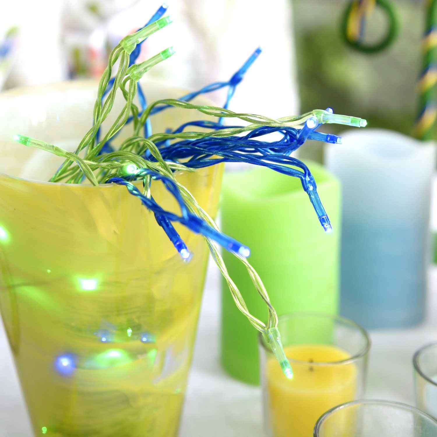 Die Batterie-Lichterketten sind einerseits technisch sehr gut ausgestattet, andererseits sind sie durch ihre knall bunten Farben der Kontrastpunkt jeder Dekoration. Ideal für die Sommer- oder Geburtstags-Party.