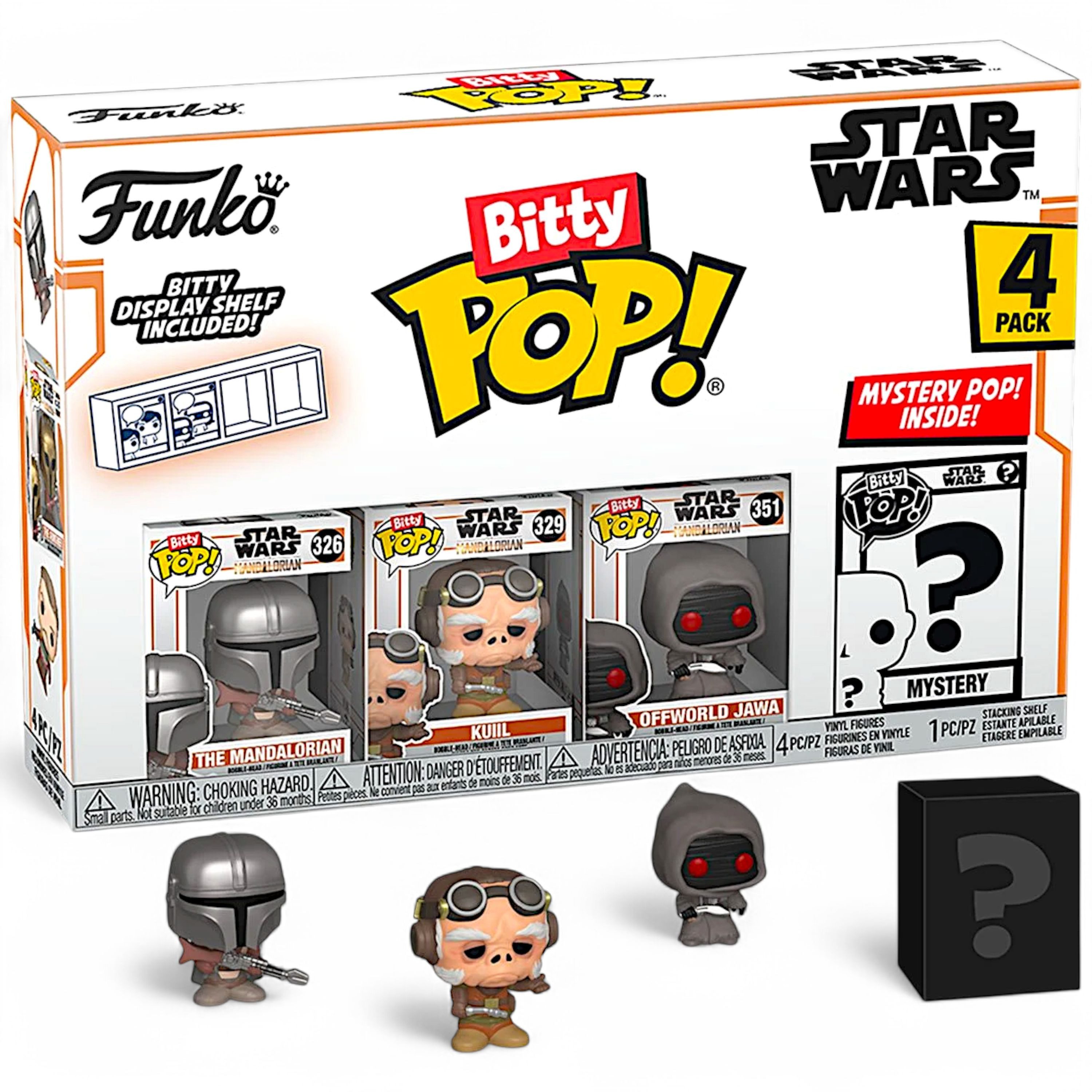 Erweitere deine Star Wars‑Sammlung mit dem Funko Bitty Pop! 4‑Pack, inklusive The Mandalorian, Kuiil, Offworld Jawa und einer Überraschungsfigur.