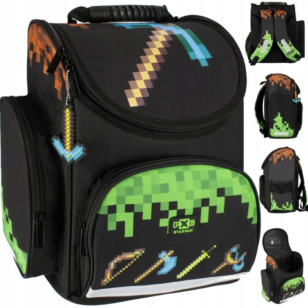 Der Starpak Schulranzen im Pixel-Game-Design ist die perfekte Wahl für Jungen in der Grundschule. Dank seiner ergonomischen, gepolsterten Rückenpartie und den breiten, verstellbaren Schultergurten trägt sich der Ranzen besonders komfortabel. Das stabile, verstärkte Material sorgt für Langlebigkeit, während zahlreiche Fächer Ordnung im Schulalltag garantieren. Reflektierende Elemente erhöhen zusätzlich die Sicherheit auf dem Schulweg. Maße: 37 x 34 x 20 cm Gewicht: ca. 880 g