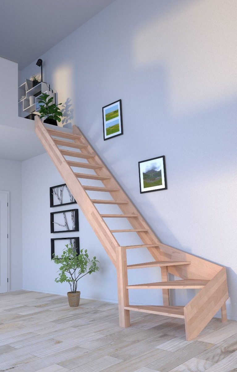 Raumspartreppe Holztreppe Rhodos in ¼ gewendelter Ausführung links-Buche-ohne