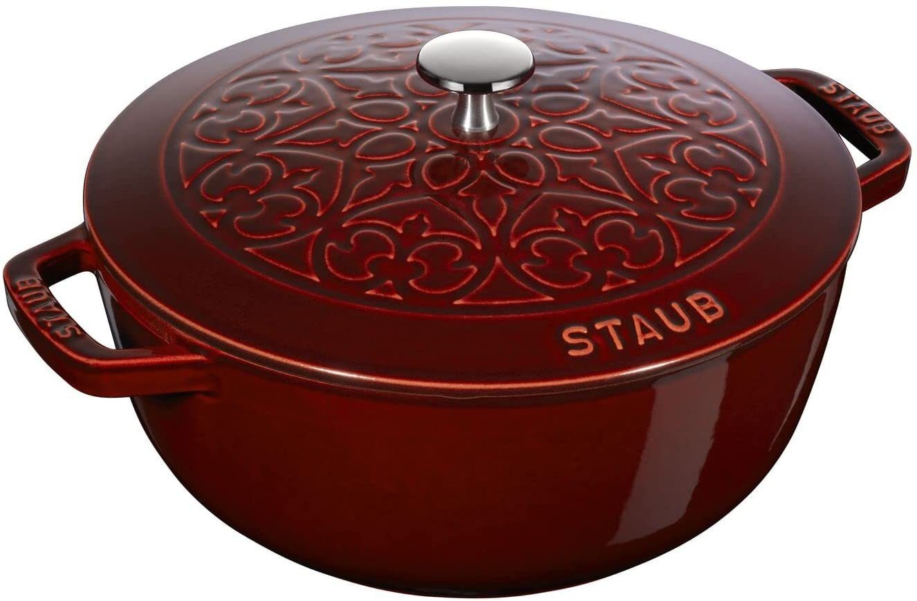 STAUB Grenadine aus rotem Gusseisen 24cm Runde Cocotte aus emailliertem Gusseisen mit einem Volumen von 3,8 L, Ideal zum Braten, Schmoren und Servieren von Fleisch, Fisch, Obst oder Gemüse Runder Schmortopf aus emailliertem Gusseisen, ideal zum Bräunen, Schmoren und Dämpfen von Fleisch, Fisch, Obst oder Gemüse - Energieeffizientes Garen im Backofen oder auf jeder Wärmequelle, einschließlich Induktion, Saftiges und zartes Ergebnis dank des speziellen Deckels mit Feuchtigkeitsspeicherung, Langfristige Erhaltung der Temperatur von heißen oder kalten Speisen - Praktisches Design und erfolgreiches Kochen : Ergonomischer Griff für eine einfache Handhabung, Deckelknopf aus Metall, hitzebeständig bis 250°C, Helle, attraktive Farbe, Reliefschrift - Hergestellt in Frankreich - Einzigartige handwerkliche Применитьung, Langlebig und kratzfest durch Innenemaillierung, Säurebeständig, Geschmacksneutral, Hand- und spülmaschinenfest.