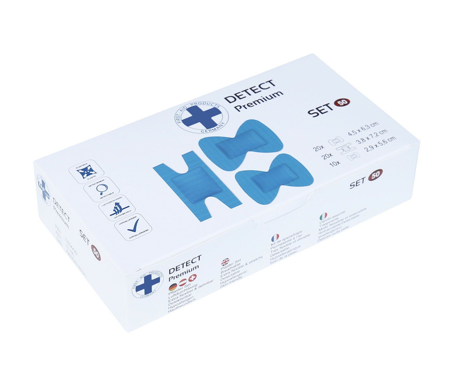 Pflastermix Detect Set 1—¦20x Fingerkuppenpflaster L - 45 x 63 mm —¦10x Fingerkuppenpflaster S - 29 x 56 mm —¦20x Fingergelenkpflaster S - 38 x 72 mm Fingerkuppenpflaster in Schmetterlingsform mit zusätzlichem Stoßschutz Fingergelenkpflaster H-förmig Visuell schnell erkennbar Elektromagnetisch detektierbar Material: PU Luftdurchlässig Hypoallergen Hautfreundlich VE: 50 Stück Verpackung mehrsprachig bedruckt - wiederverschließbar Farbe: blau