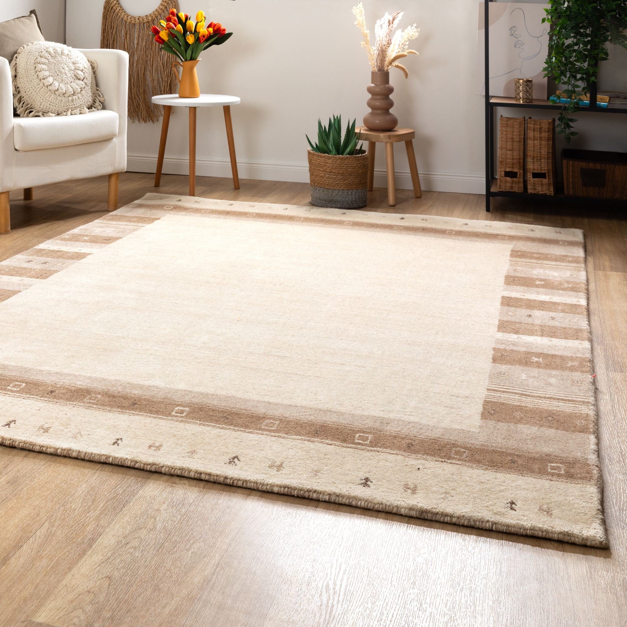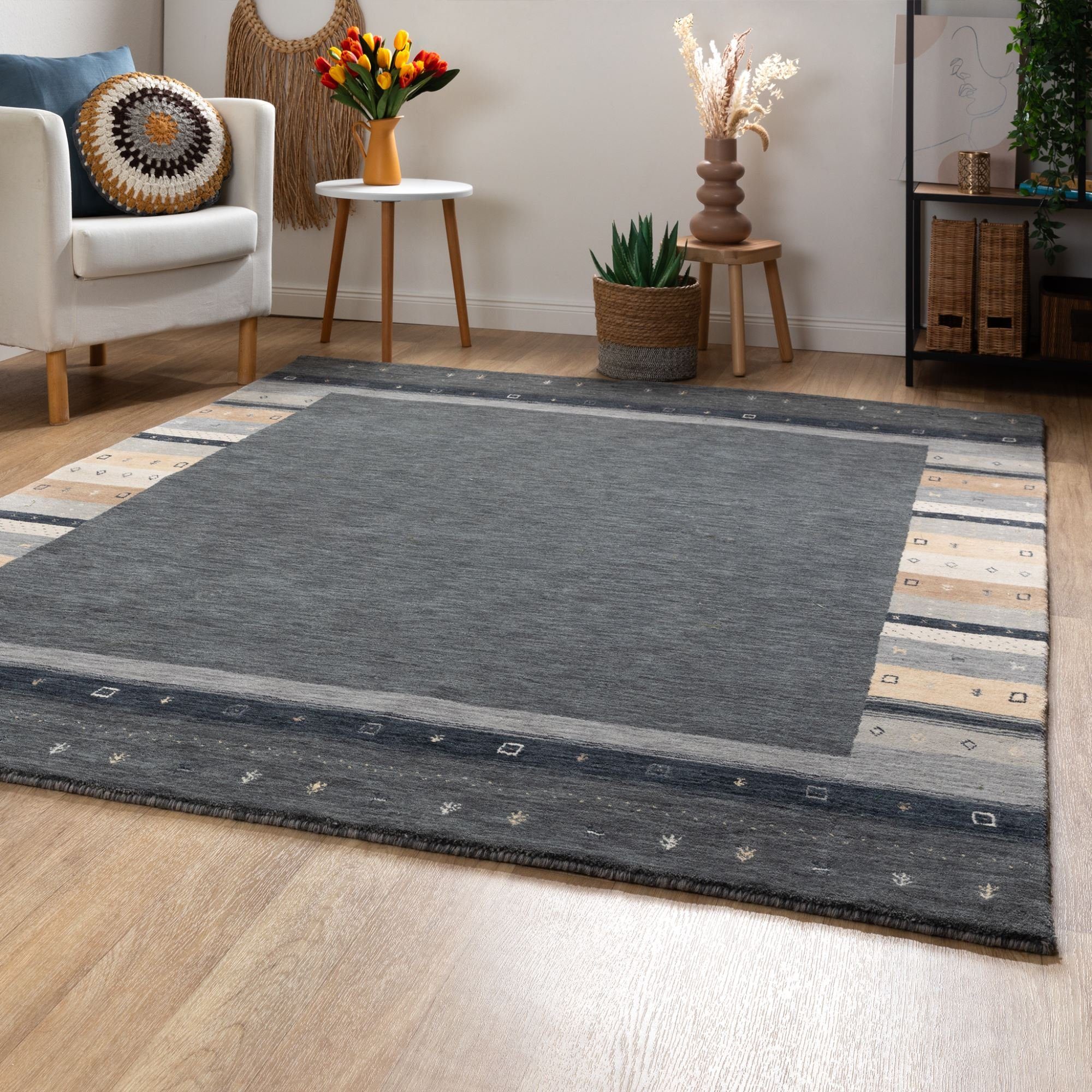 Die klassischen Motive der Gabbeh-Nomaden umranden den Teppich Zagros in einer wunderschönen Bordüre und ergänzen insbesondere Einrichtungen im Rusic- oder Ethno-Stil auf ideale Weise.