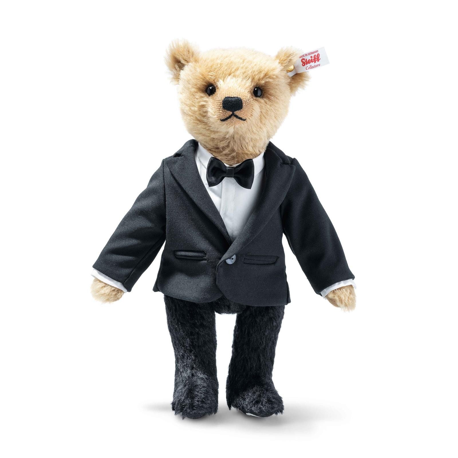 Steiff Teddybär 007606 James Bond 31 cm 60 jähriges Jubiläum, hochwertige Naturfaser, beige mit schwarzen Anzug, 5-fach gegliedert, abwaschbar, limitierte Auflage 1962 Stück