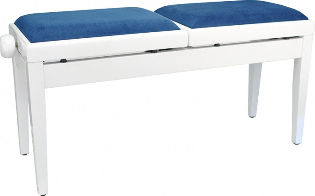 Klavierbank Steinbach Doppelklavierbank in Weiß poliert blauer Stoff