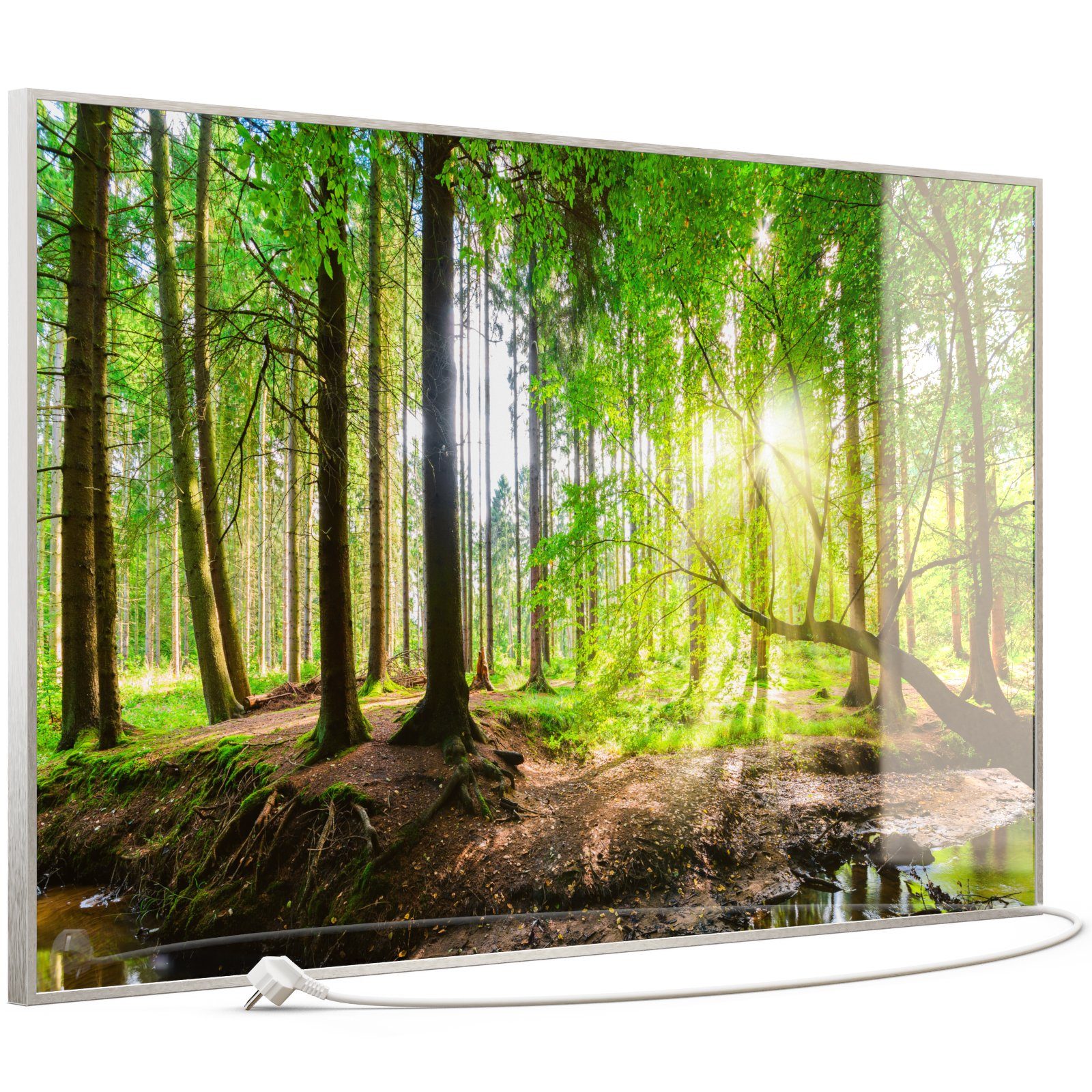 STEINFELD Heizsysteme Infrarotheizung, Glas Bild 350W-1200W, Inklusive Thermostat, 067 Wald Panorama