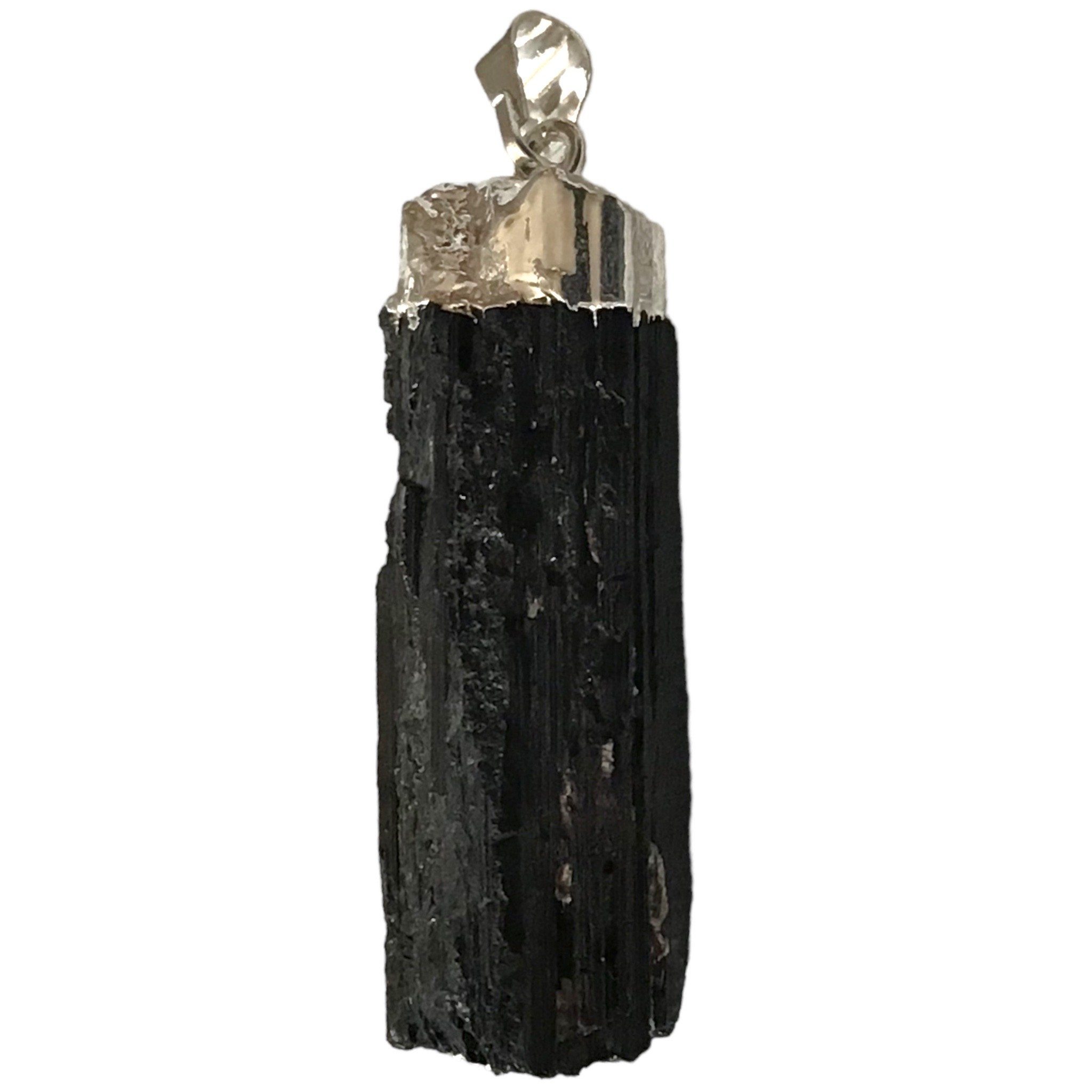 Diese schwarzen Turmalin Kristalle wurden mit einer Silberfassung versehen, durch die schöne Form liegen diese schwarzen Turmaline sehr gut an.