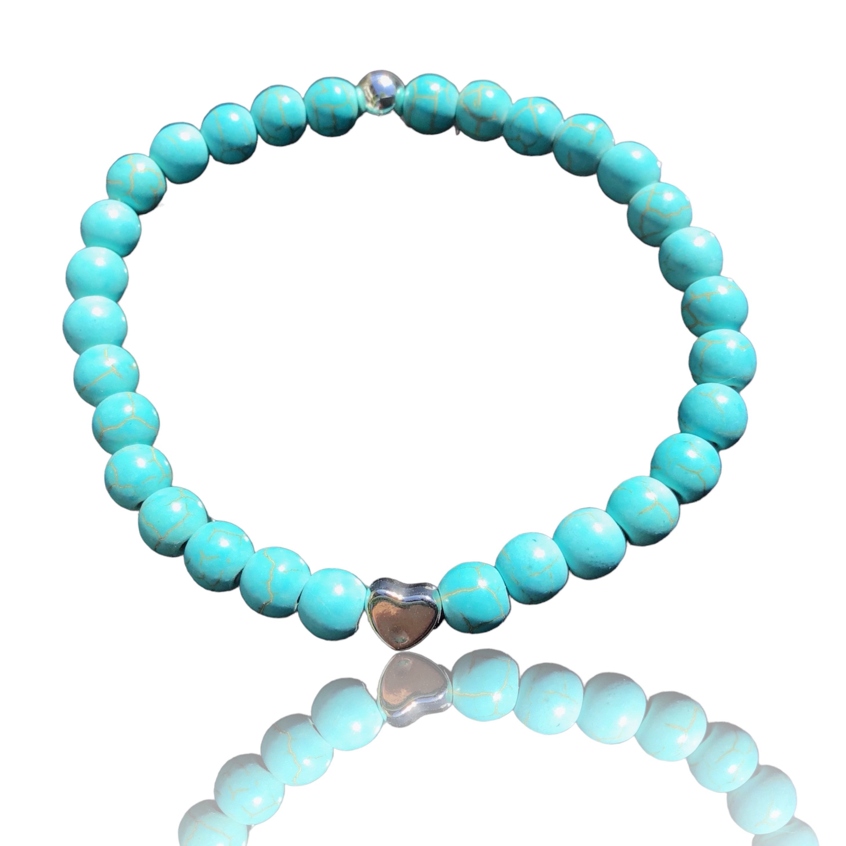 Türkenit Perlenarmband mit polierten Perlen in Verbindung mit 925 Silber und einem versilberten Herzchen incl. Geschenkverpackung.