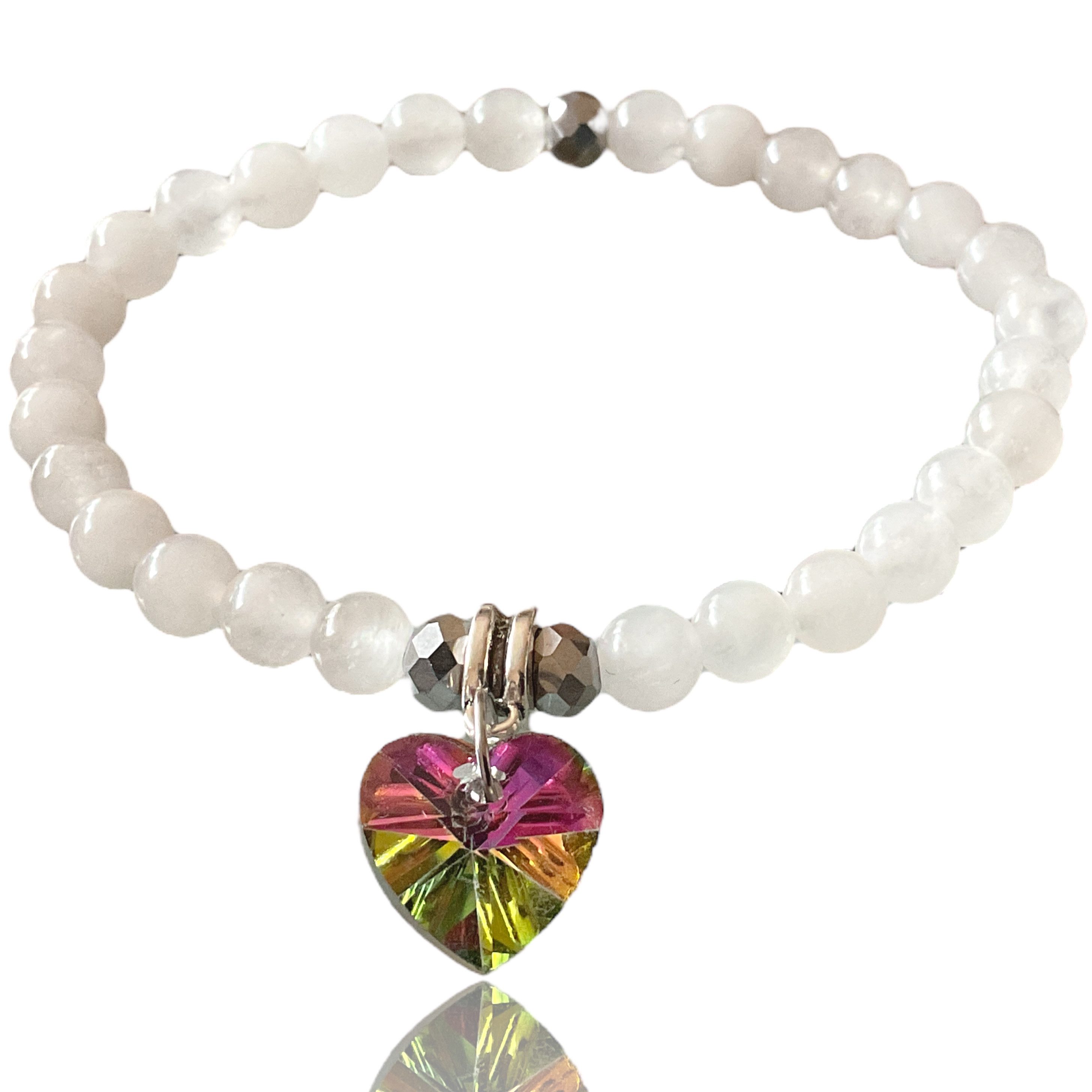 Entzückendes Weiße Jade Edelstein Perlenarmband mit Aura Herz | handgefertigt in unserem Atelier | incl. edler Geschenkbox
