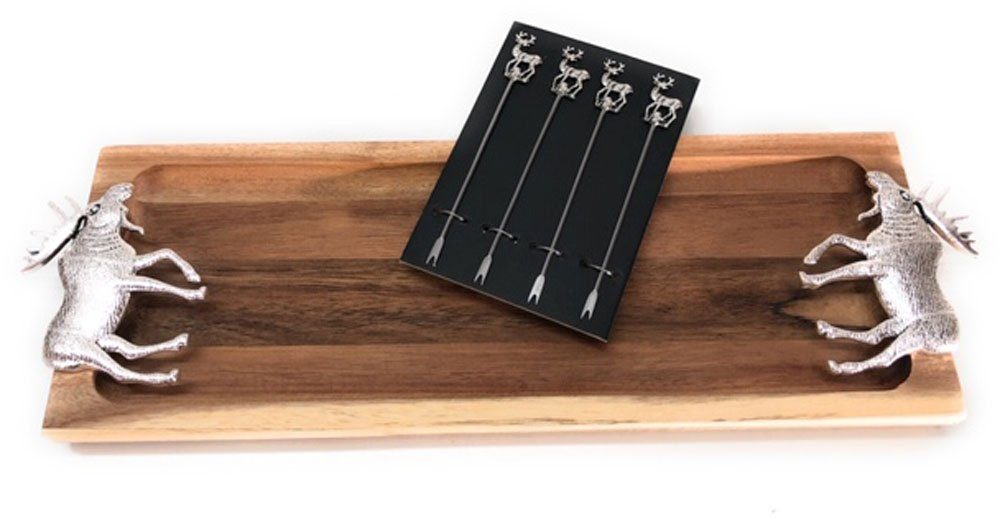 Diese ausgefallene Jausenplatte aus Holz mit Hirsch und Pickern sollte jeder haben der den Landhausstil liebt. Auch für Jäger ist die Platte ein tolles Geschenk. Auf dieser Platte angerichtet, wird ihr Fingerfood zur Augenweide. Die Platte ist ca. 35cm lang und 12cm breit. Dazu werden Picker mit Hirschen geliefert. Das Brett und die Picker sind nicht spülmaschinengeeignet.