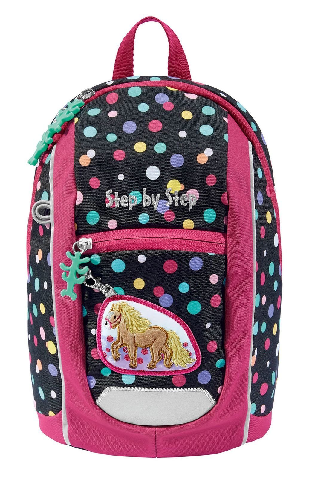 Dieser Step by Step Kiga Mini Backpack strahlt pure Lebensfreude aus. Das wiedererkennbare, kinderfreundliche und verspielte Design begeistert Kinder sofort. Reflektierende Elemente an den verschiedensten Stellen am Rucksack bringen Schutz im Straßenverkehr. Schnell über die Schultern gehängt, sitzt der gepolsterte, atmungsaktive Rücken und die zwei Schultergurte angenehm auf dem Rücken und auch ein längeres Tragen wird zum Kinderspiel. Ein absolutes Highlight sind die magnetischen Anhänger mit den verschiedensten Motiven, die man auch gerne mal mit Freunden austauschen kann, damit nie Langeweile einkehrt. Je nach Wunsch kann im Sichtfach auch ein Bild positioniert werden. Bei Spiel, Spaß, Abenteuer wird auch gerne einmal etwas schmutzig. Mit dem Step by Step Mini Backpack kein Problem. Den Magneten aus der Fronttasche entfernt, ist der Rucksack waschbar. Schenken auch Sie Ihrem Kind einen Begleiter, den es gerne an seiner Seite hat.