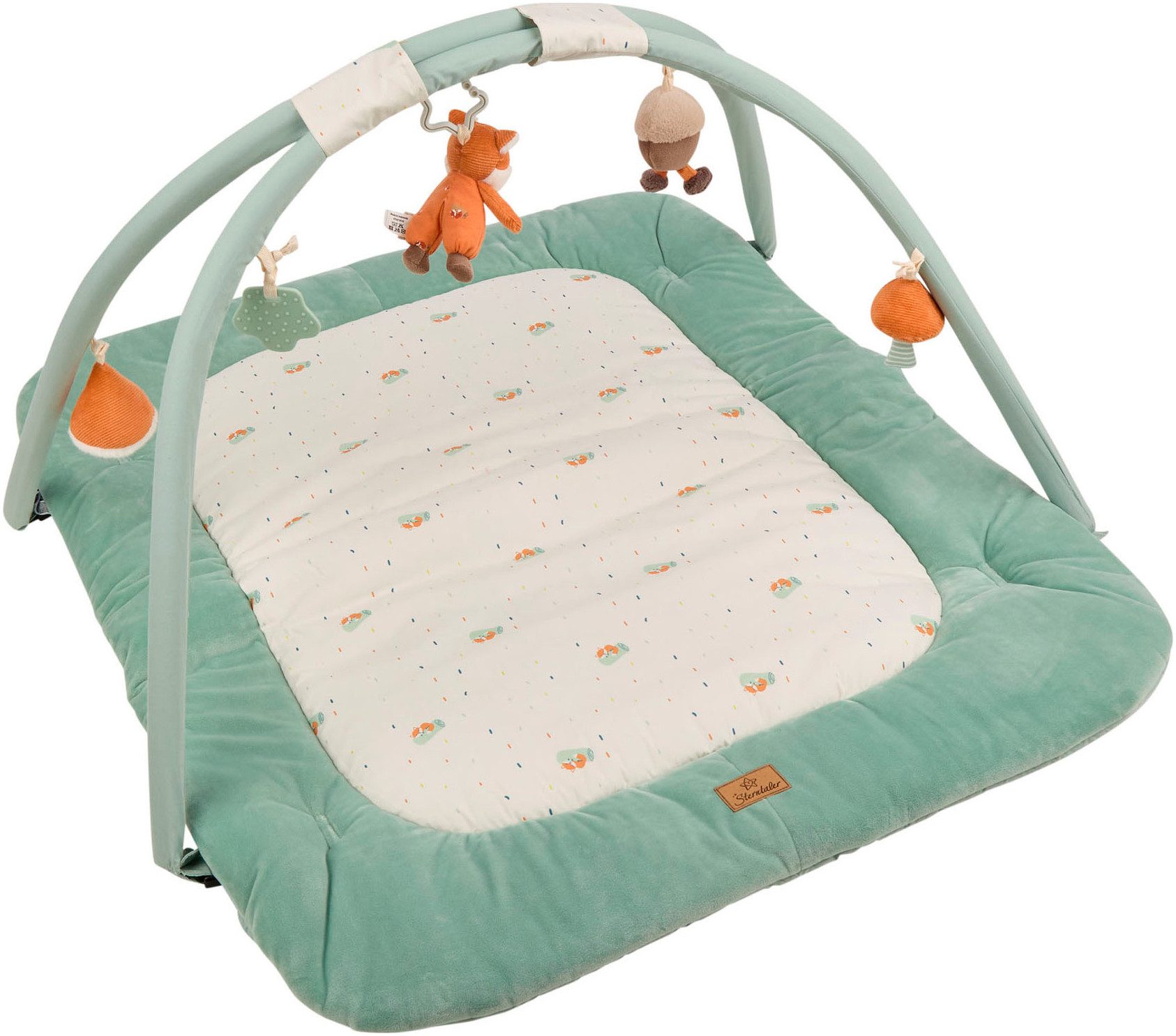 Ausstattung | Krabbeldecke, Rassel, Silikonbeißring, Spiegel, Spielbogen |
