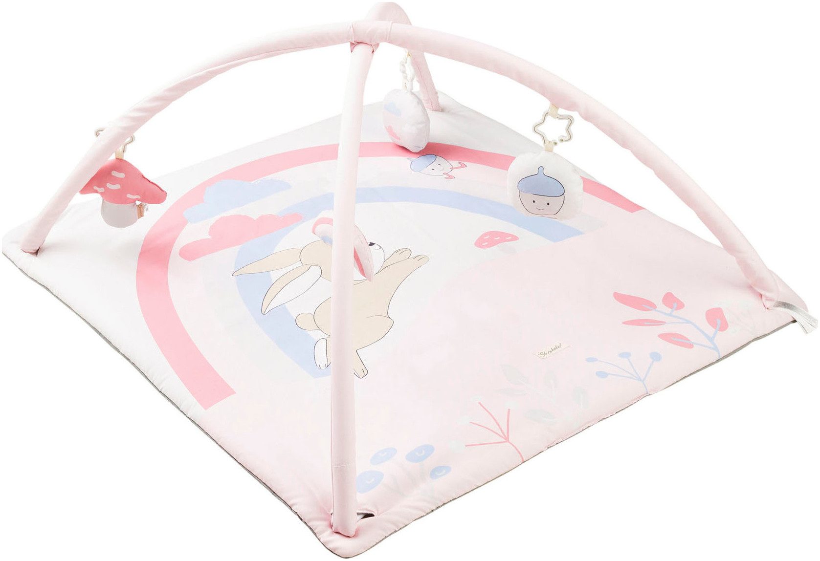 Ausstattung | Knisterpapier, Krabbeldecke, Quietsche, Rassel, Spielbogen, Sternförmige C-Ringe |