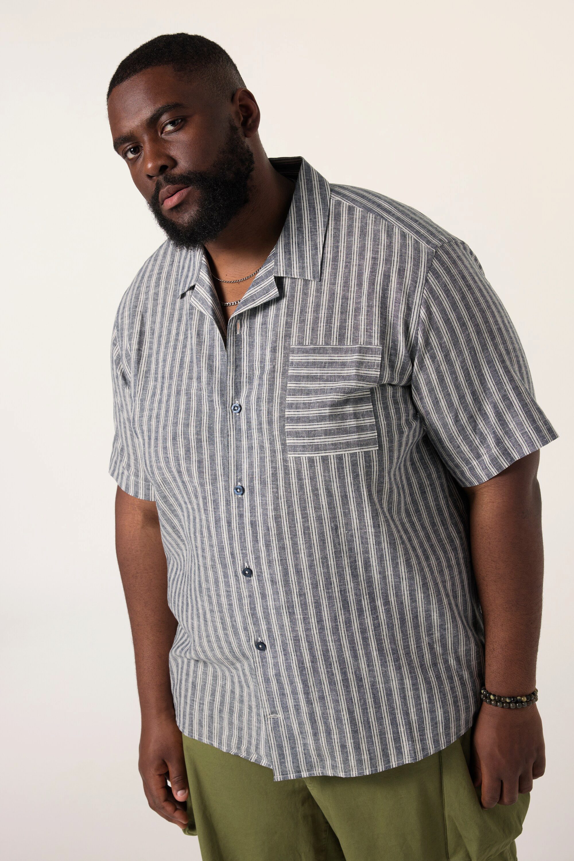 STHUGE Kurzarmhemd Hemd Halbarm Leinenmix Streifen Kuba-Kragen