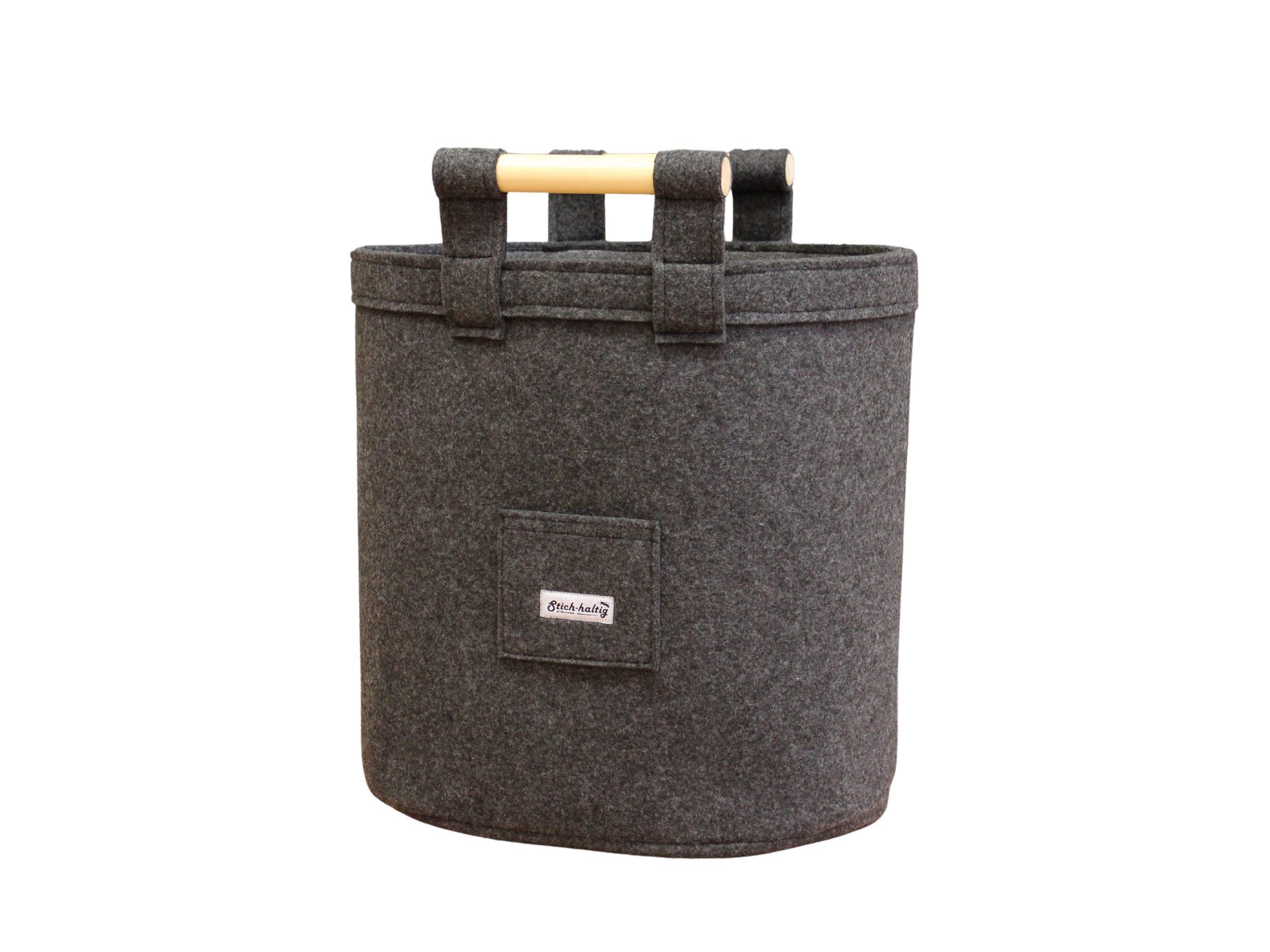 Der ovale Kaminkorb M kombiniert hochwertige Verarbeitung und durchdachtes Design mit stilvoller Funktionalität. Hergestellt aus anthrazitfarbenem Filz, bietet er eine schlichte Eleganz und hervorragende Langlebigkeit. Durch seinen steifen Filz ist er formstabil, während das geringe Gewicht und die runden Holzgriffe das Tragen und Transportieren von Kaminholz besonders komfortabel machen. Zudem bietet der Korb eine praktische Tasche, die perfekt ist, um Streichhölzer griffbereit zu halten. Schutz und Vielseitigkeit Ein weiteres Highlight ist der weiche Filzboden, der empfindliche Oberflächen wie Parkett und Laminat vor Kratzern schützt. Im Gegensatz zu Weidekörben hinterlässt dieser Filzkorb keine Holzspäne oder Rückstände, was ihn besonders pflegeleicht macht. Und obwohl er ideal für die Lagerung von Kaminholz entworfen wurde, ist er ebenso vielseitig für die Aufbewahrung von Zeitschriften, Spielzeug oder Decken geeignet. Sein minimalistisches Design sorgt dafür, dass er sich mühelos in jede Wohnraumgestaltung integriert und gleichzeitig als dekoratives Element im Wohnzimmer dient. Qualität und Handwerkskunst Jeder "Burgturm" Korb wird mit großer Sorgfalt in Handarbeit gefertigt, was ihm den besonderen Charme handgefertigter Produkte verleiht und ihn gleichzeitig modern und funktional macht. Erhältlich in verschiedenen Größen und Farben, wird der "Burgturm" M nicht nur zu einem praktischen, sondern auch zu einem stilvollen Wohnaccessoire. Holen Sie sich diesen eleganten Filzkorb für eine aufgeräumte, stilvolle Kamin-Ecke und mehr Ordnung im Zuhause.
