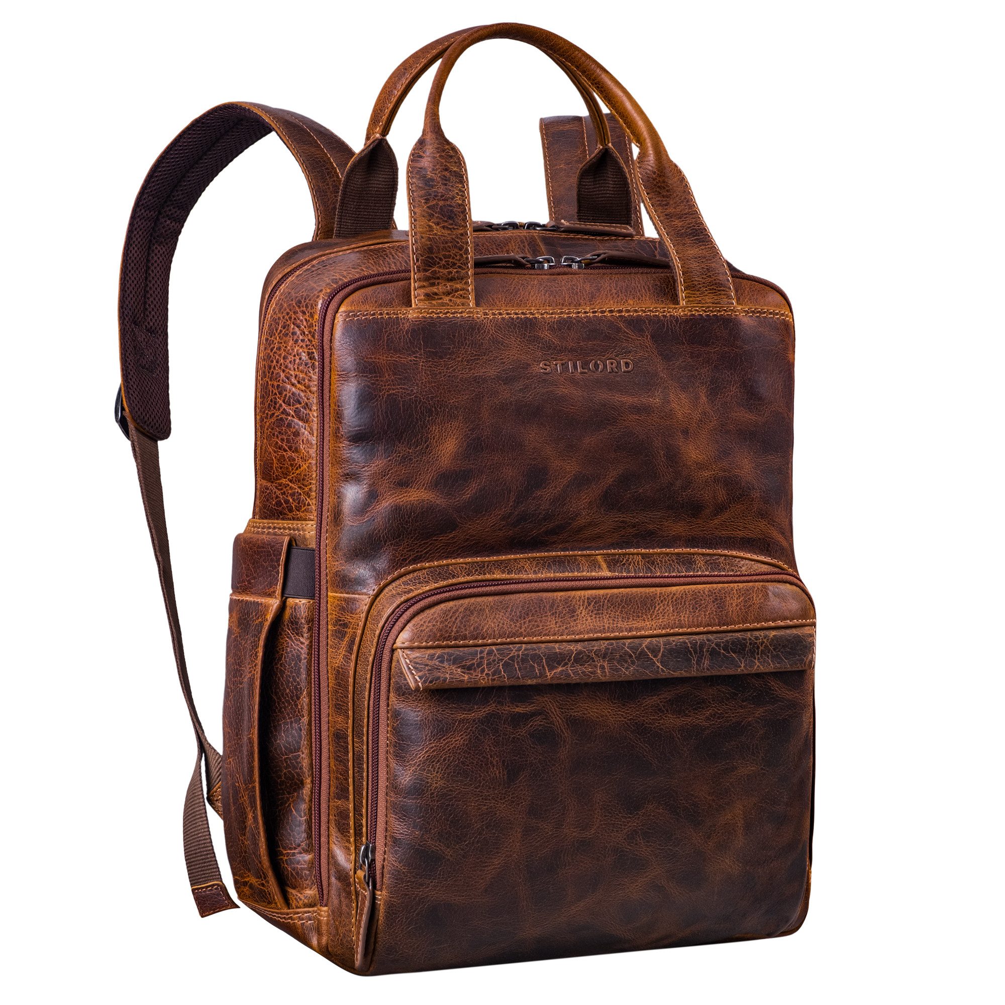 - Ideal als schicke Rucksacktasche dank der 2 Tragegriffe aus Leder
