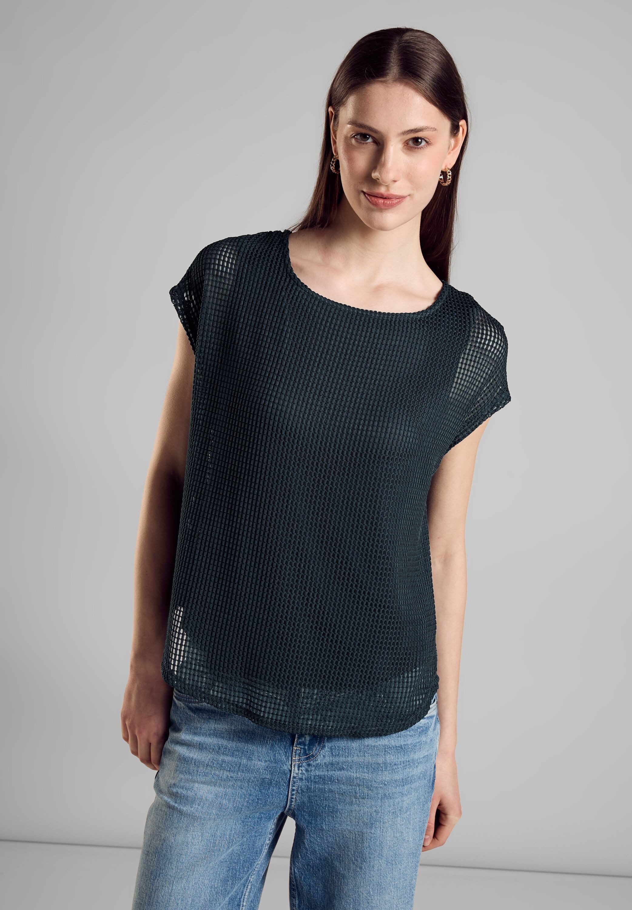 Mit dem 2-in-1-Shirt von STREET ONE lassen sich einfach neue Outfits zusammenstellen. Es wirkt mit dem Mesheinsatz stylisch und verspielt. Dieses Shirt hat einen Rundhalsausschnitt und ist taillenbedeckend sowie basic geschnitten und umspielt deinen Oberkörper locker.