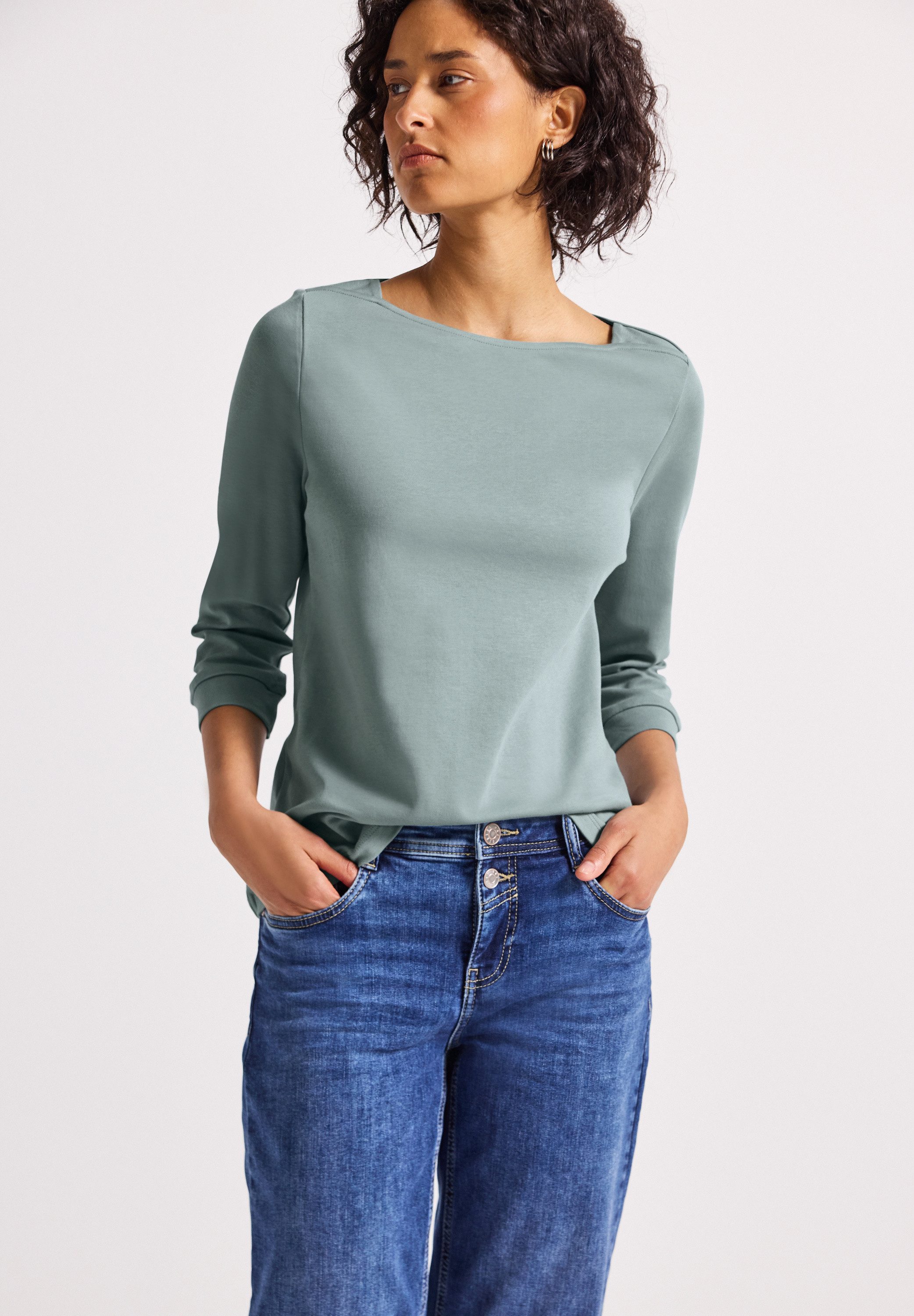 Mit dem 3/4-Arm-Shirt von STREET ONE stellst du im Handumdrehen ein neues Outfit zusammen. Dieses Shirt hat einen U-Boot-Ausschnitt und ist normal.