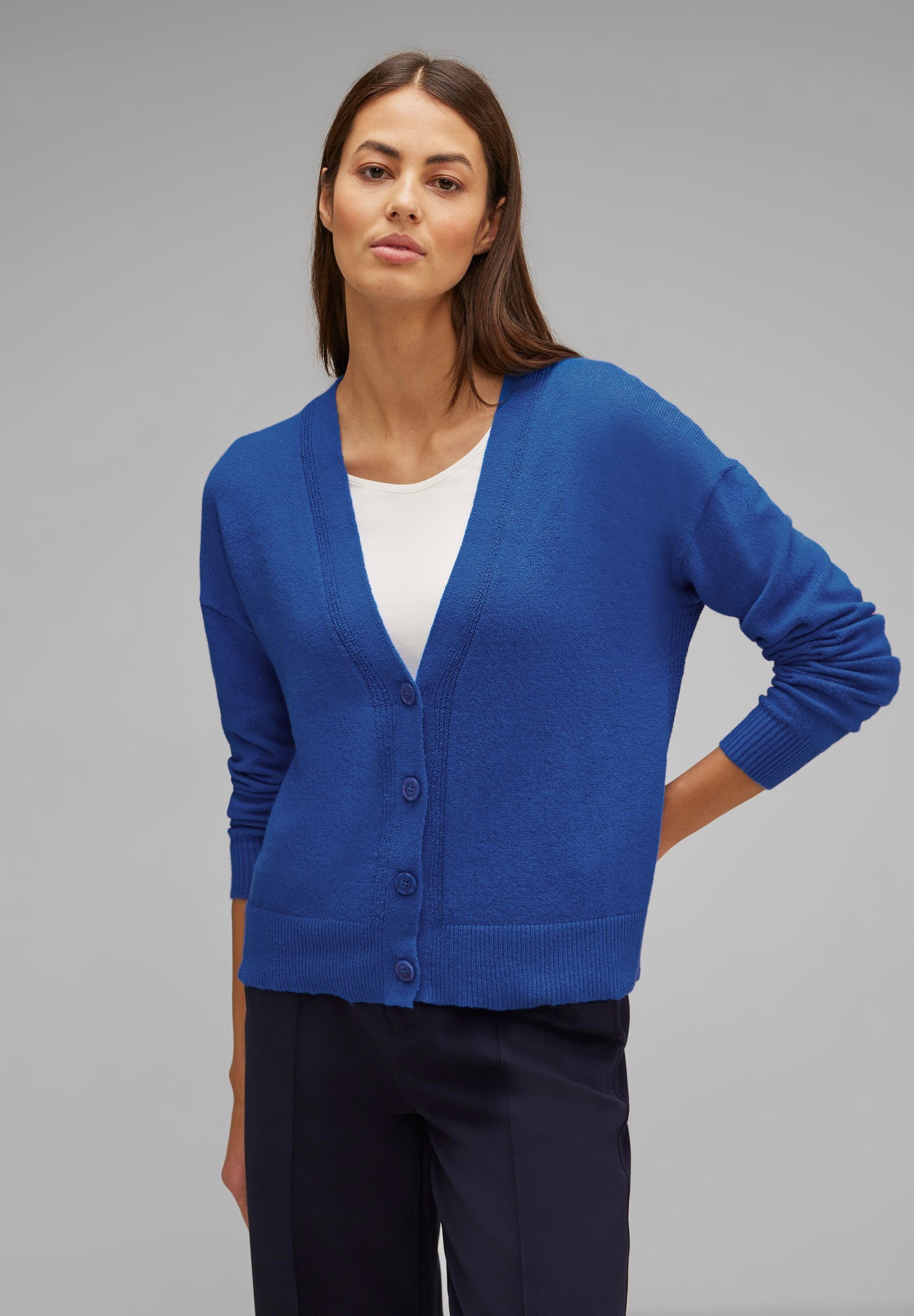 Der lässige Cardigan von Street One ist ein MUSS in jedem Damen-Kleiderschrank. Er lässt sich über eine Vielfalt von Styles kombinieren und sieht in jedem Outfit gut aus. Mit seiner zeitlosen einfarbigen Optik eignet er sich hervorragend für den täglichen Gebrauch oder als Statement Piece, das ein elegantes Outfit vervollständigt.
