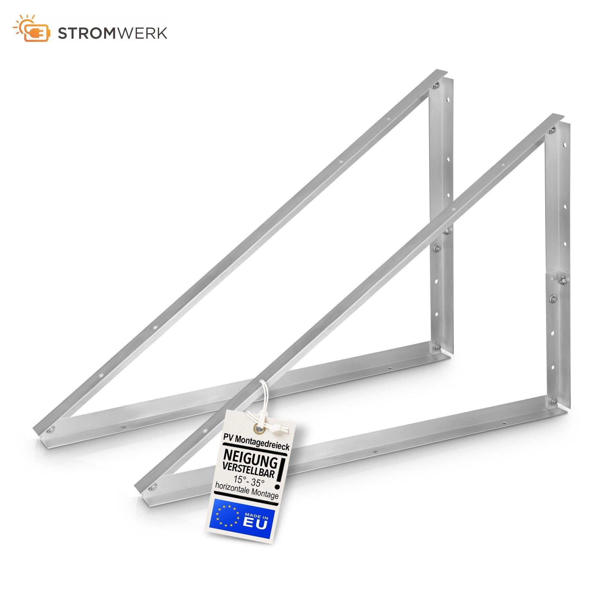 Die Stromwerk Photovoltaikmodul-Aufständerung aus Aluminium ist in der Neigung im Bereich 15-35° in 5 Grad Schritten verstellbar.