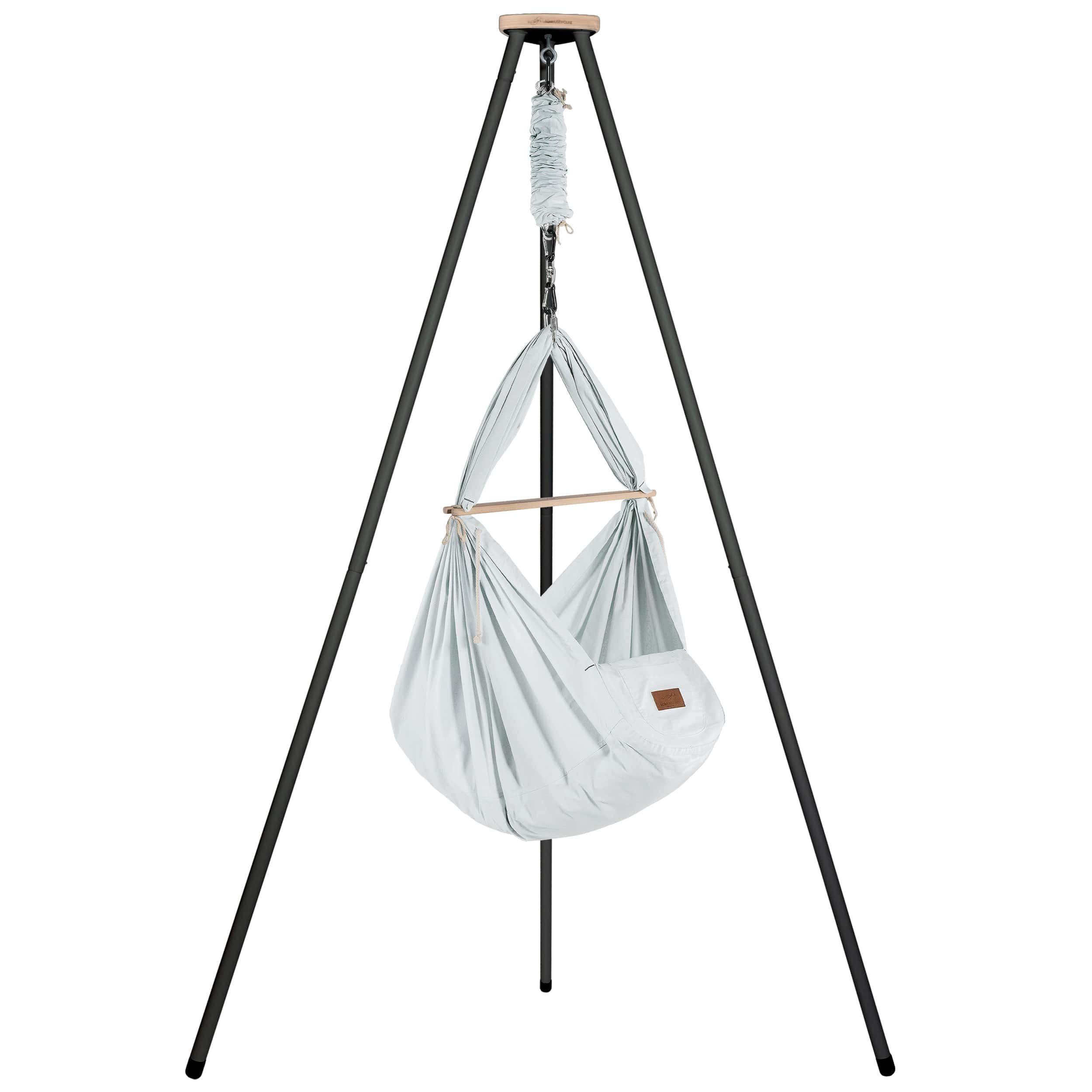 Das Federwiegen-Gestell TIPI ist schnell und unkompliziert aufgebaut und zugleich sehr standfest und stabil. Bei Bedarf bietet es auch ausreichend Platz für die zusätzliche Befestigung unseres SCHMUSEWOLKE-Federwiegenmotors.