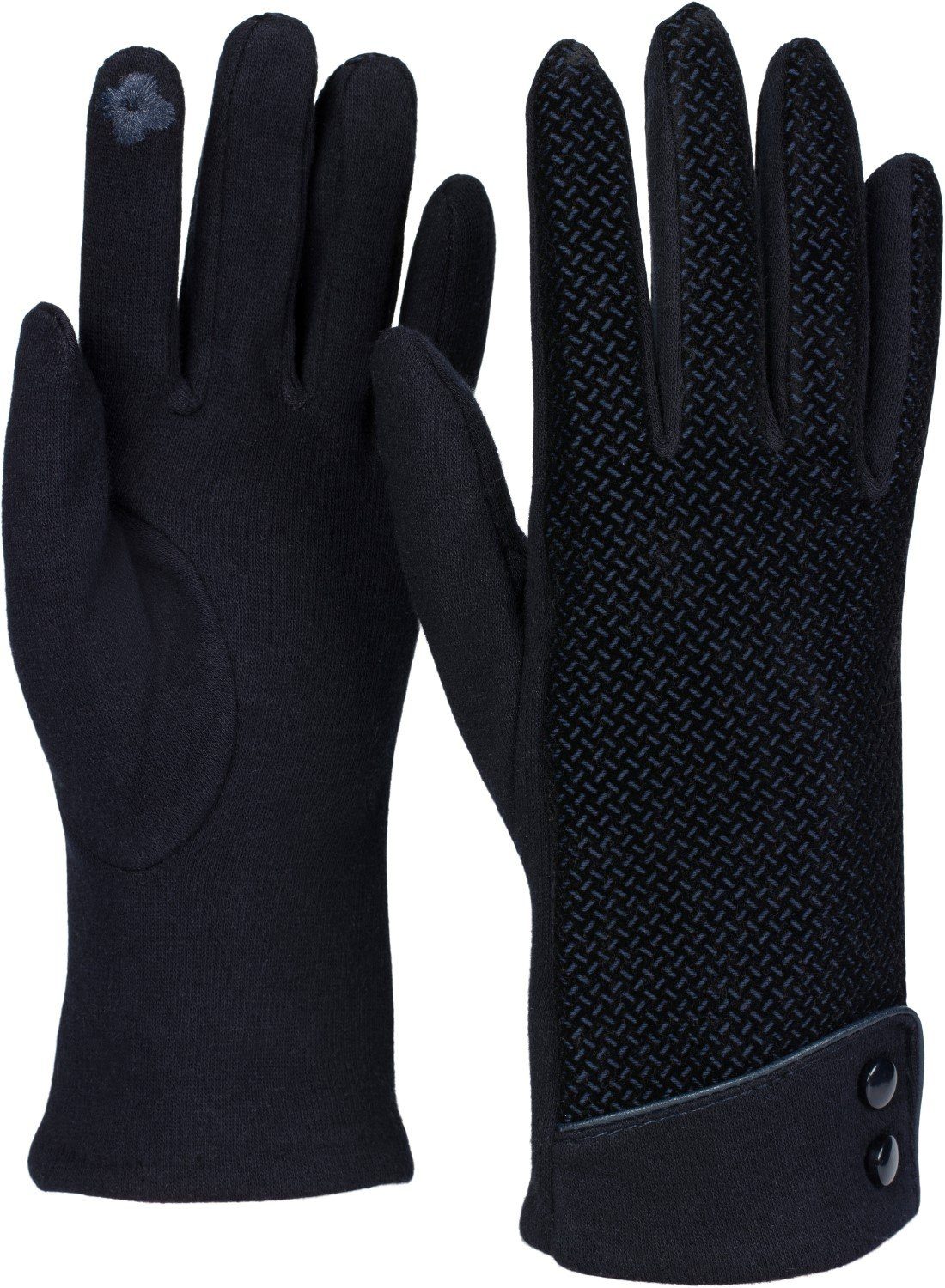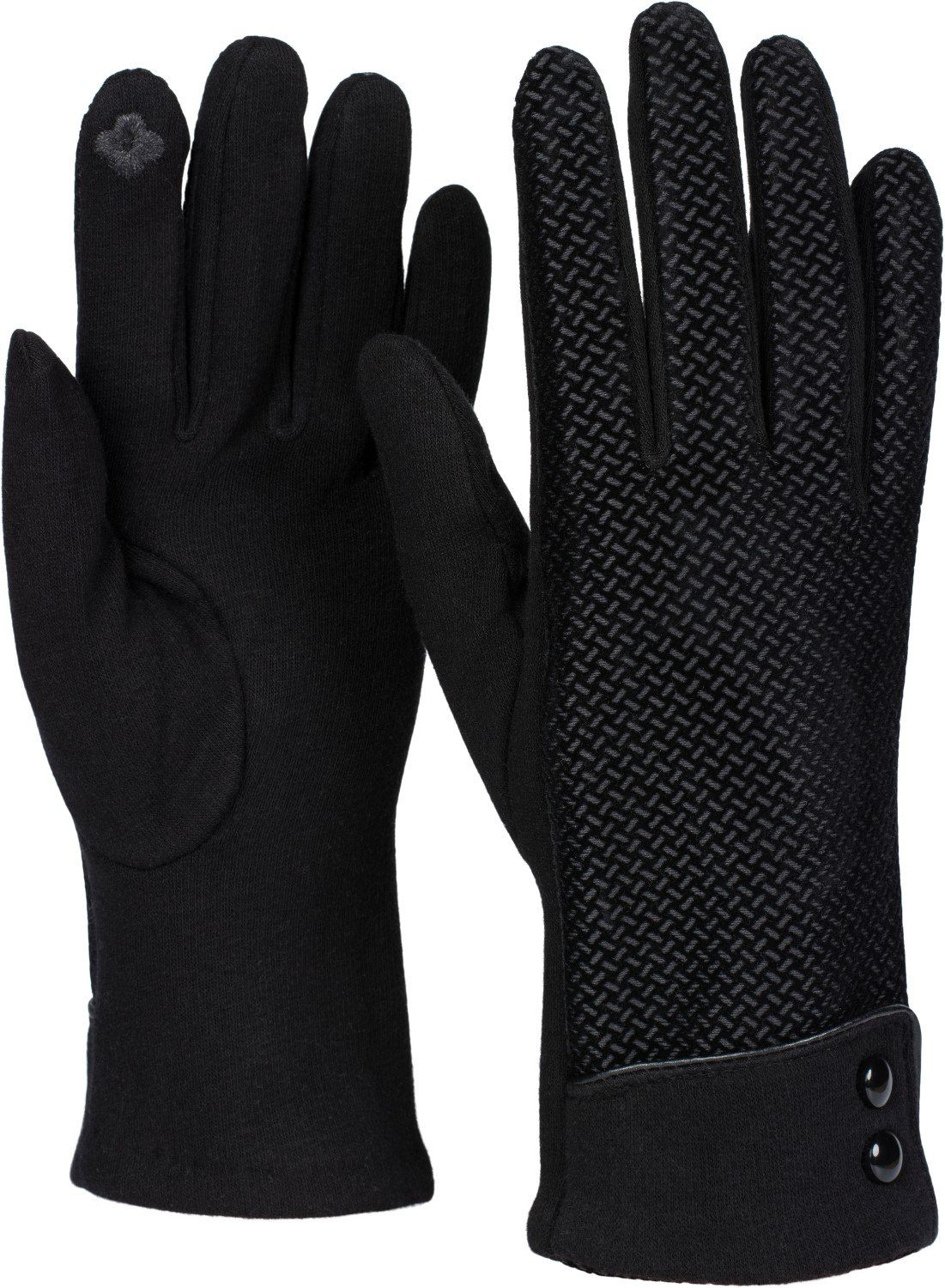 styleBREAKER edle warme Touchscreen Stoff Handschuhe mit Oberseite in weicher Riffel Muster Optik mit Knöpfen am Bund und Fleece Innenfutter.