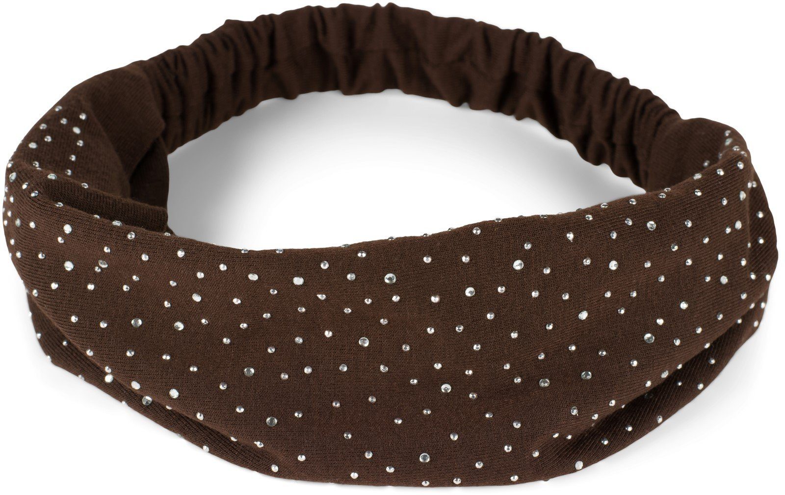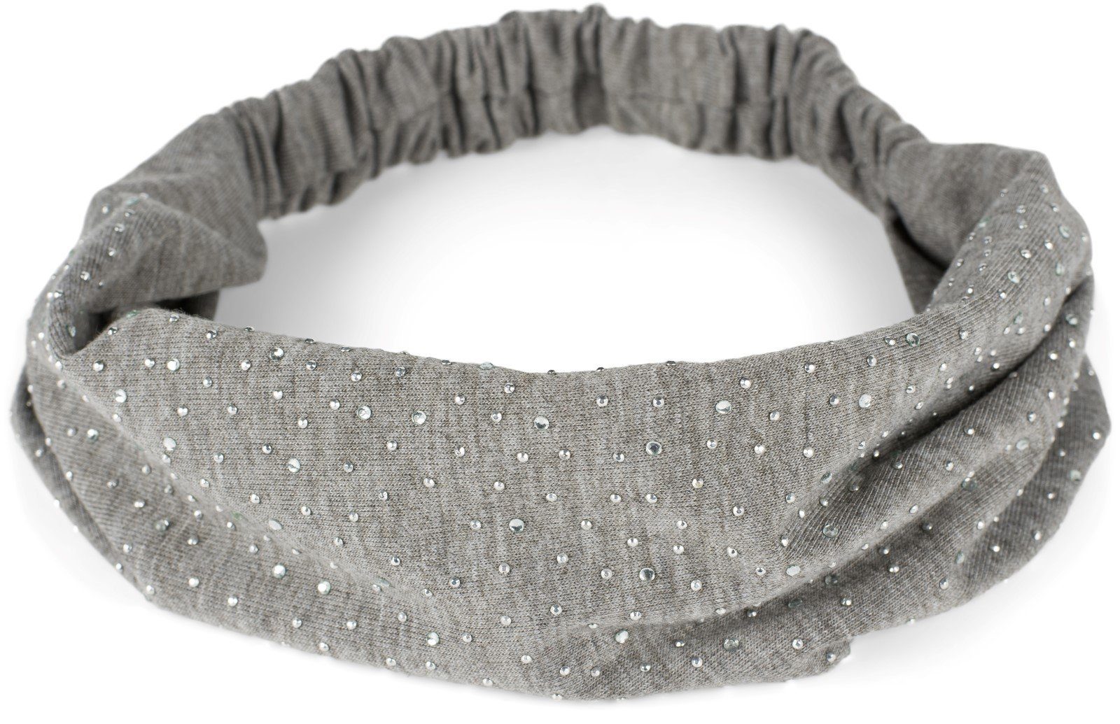 styleBREAKER modernes breites Haarband mit Strass besetzt und Gummizug.