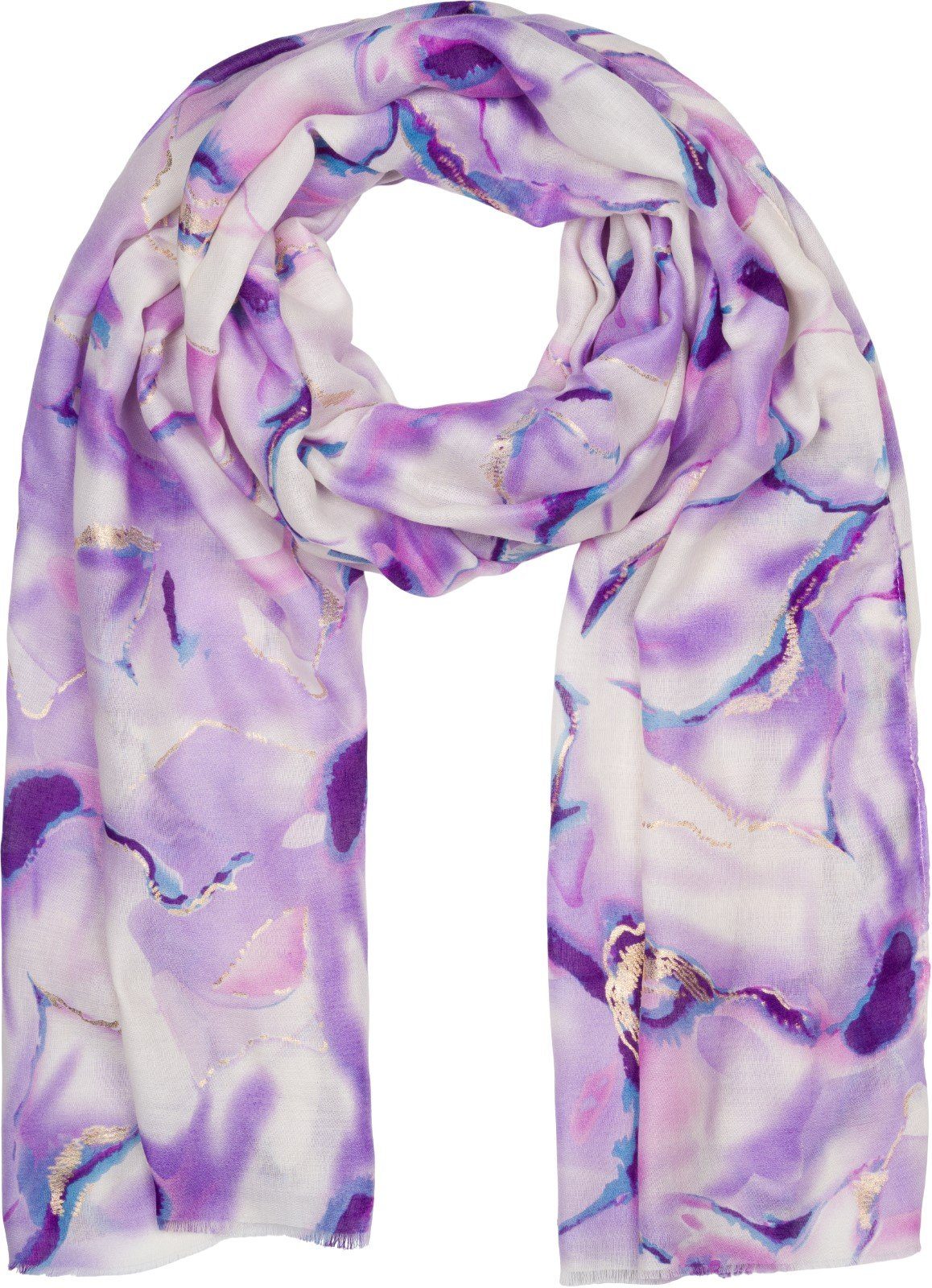 styleBREAKER weicher leichter Schal mit fließendem Marmor Muster im Aquarell Stil und Metallic Akzenten mit kurzen Fransen an den Enden.