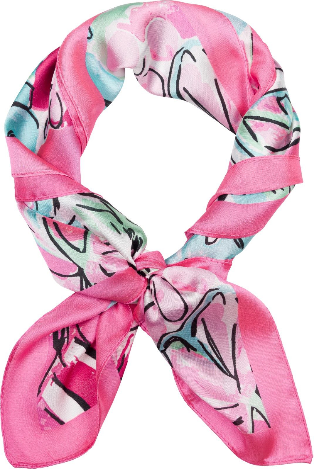styleBREAKER seidig leichtes Quadratisches Halstuch mit tropisch buntem Palmen Blätter und Blüten Muster im angesagten Popart Style