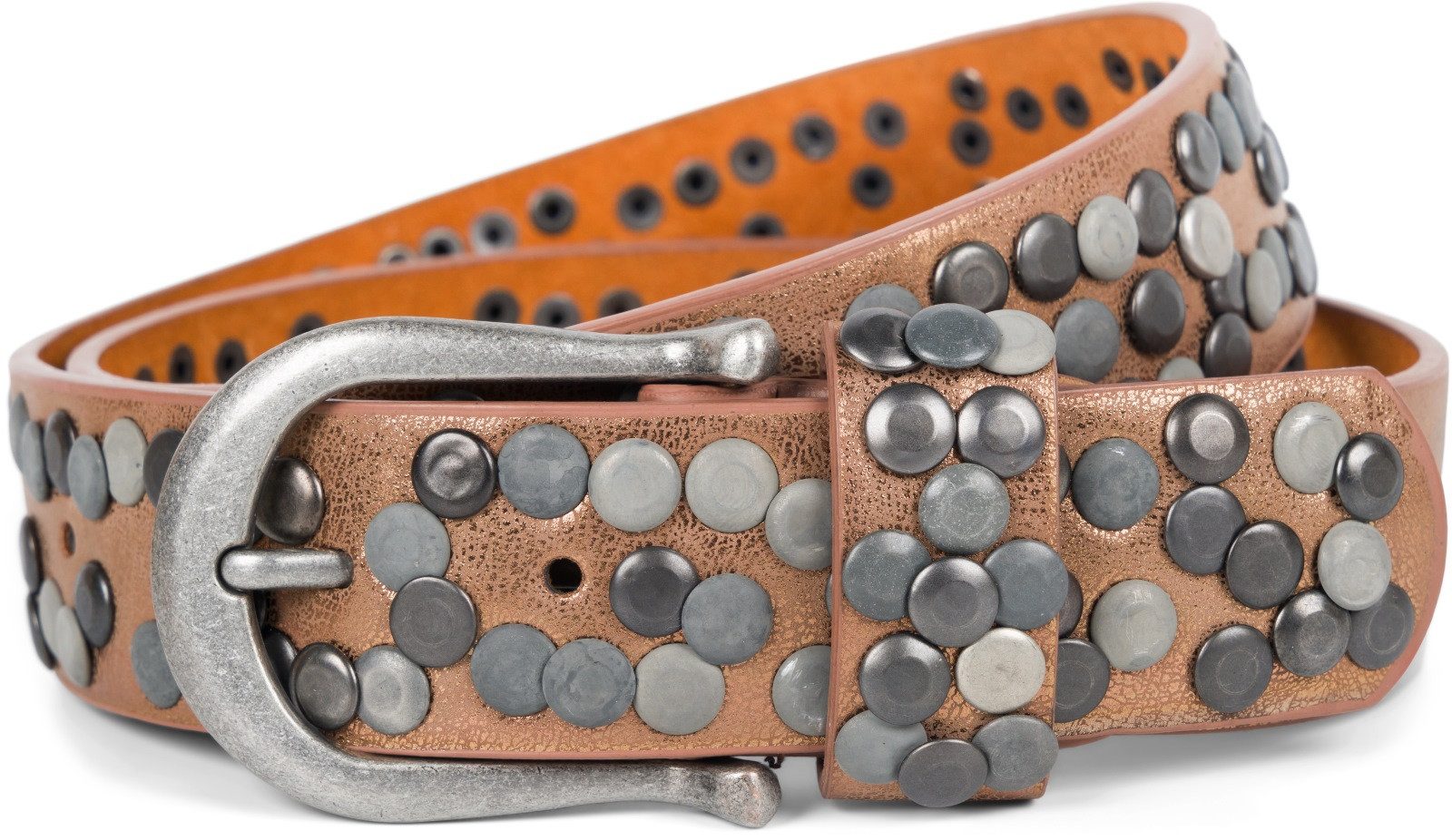 styleBREAKER klassischer Einfarbiger Nietengürtel mit unterschiedlich farbigen Nieten.