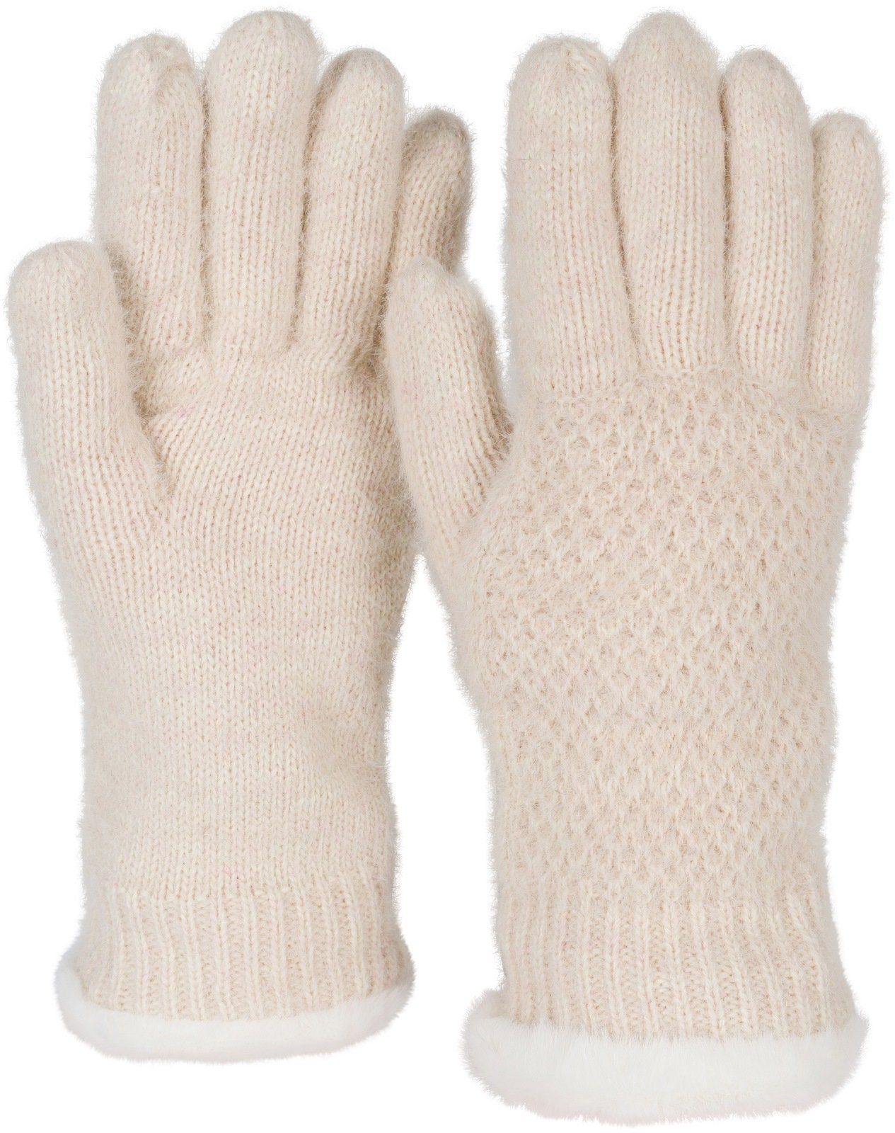 styleBREAKER warme gefütterte einfarbige Strickhandschuhe mit Reiskorn Muster und Thermo Fleece Futter.