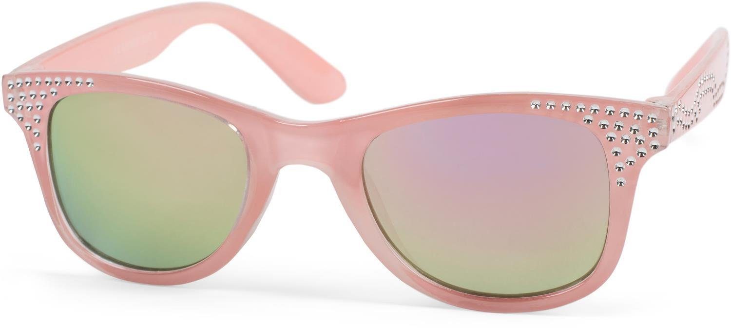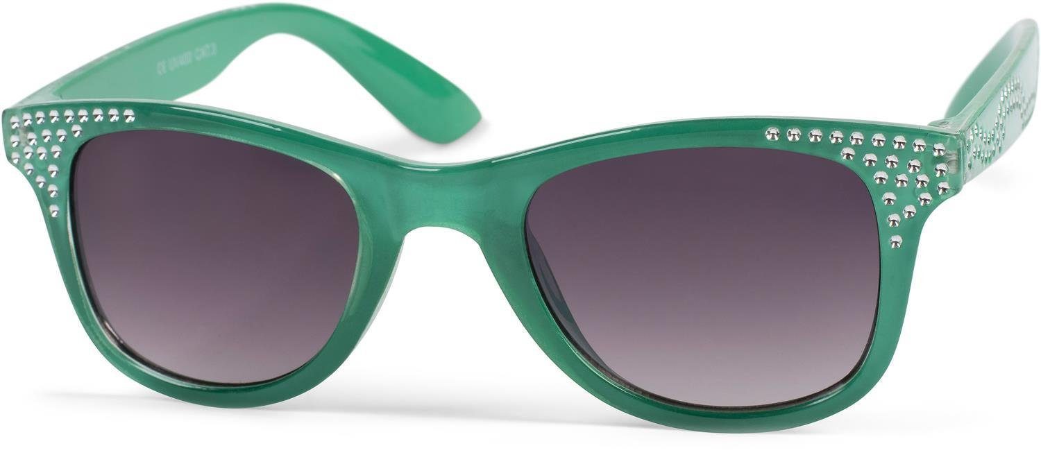 styleBREAKER moderne Kinder Nerd Sonnenbrille im Retro Look mit Strasssteinchen Verzierung an Rahmen und Bügel.