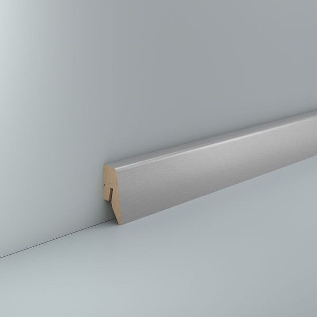 Diese Sockelleiste in Dekor Aluminium ist die perfekte Wahl für moderne Bodenbeläge – egal ob Laminat, Vinyl, Klick-Vinyl oder Parkett. Sie harmoniert hervorragend mit neutralen, grauen oder dunklen Farbtönen und sorgt für ein stimmiges Gesamtbild vom Boden zur Wand.