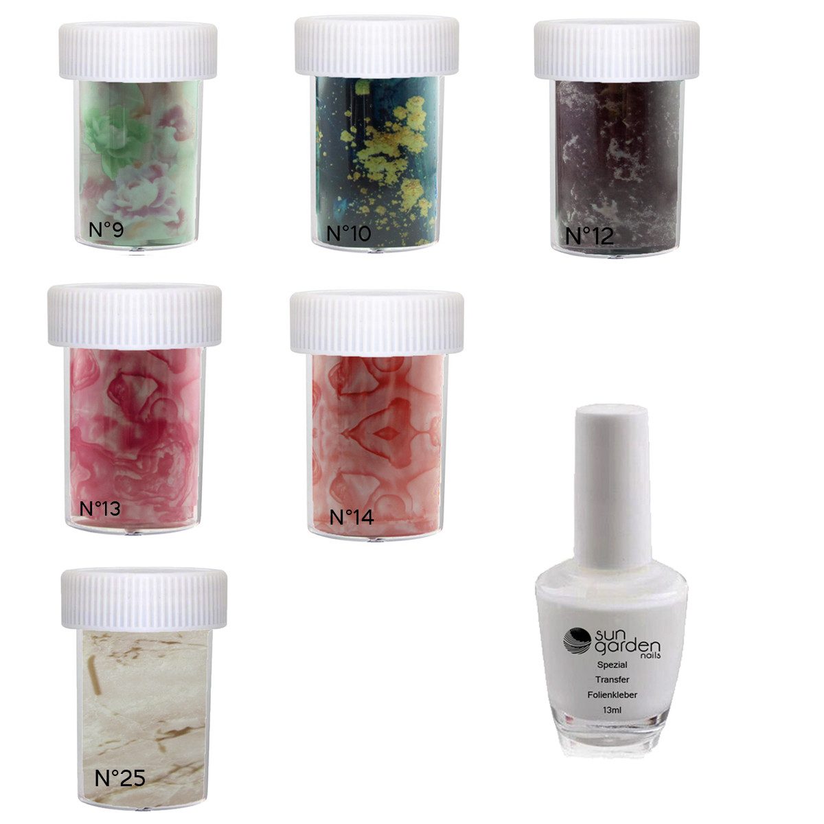 6x Transfer Folien, 1 x Nagelfolienkleber Spezial
