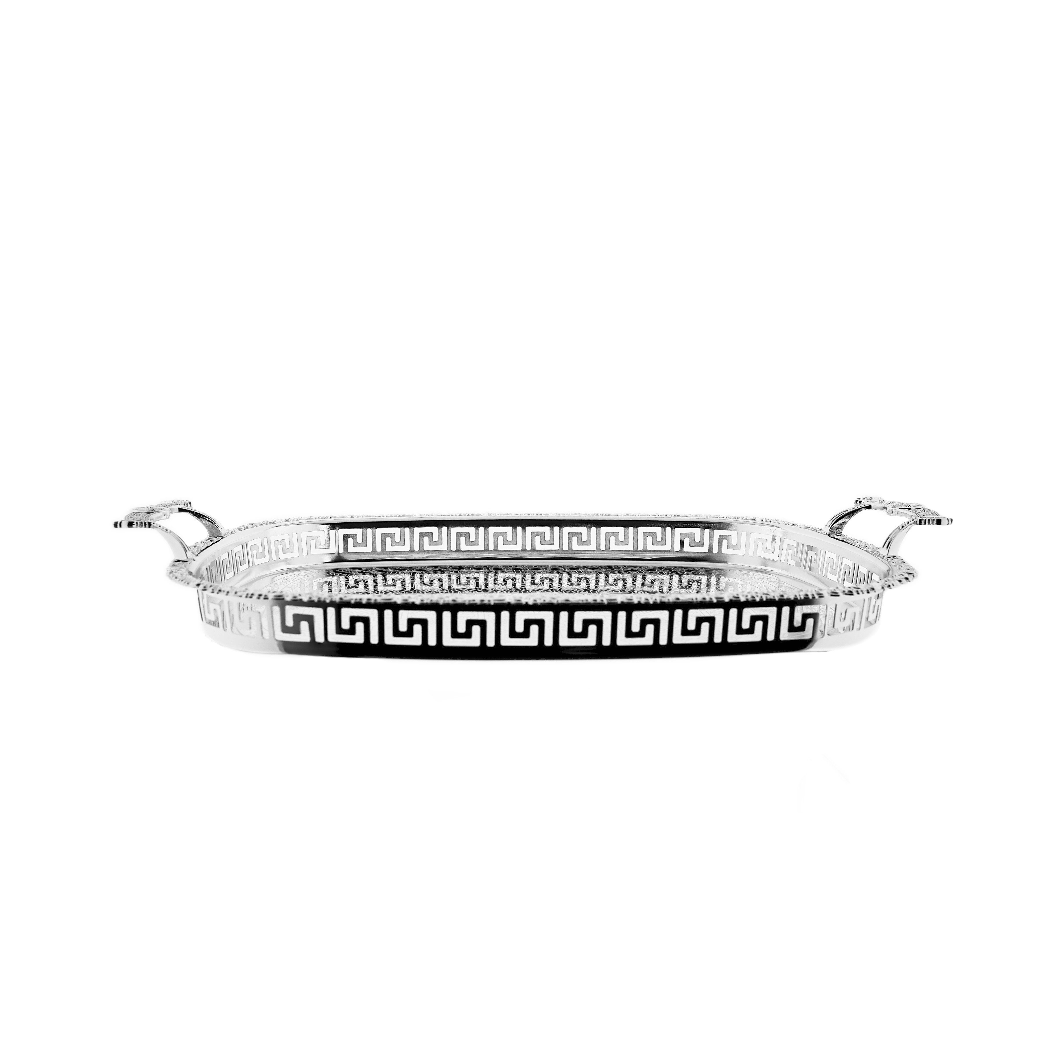 Das ovale Design des Tabletts macht es zu einem vielseitigen Stück, das sowohl für den privaten Gebrauch als auch für Veranstaltungen und Feierlichkeiten geeignet ist.