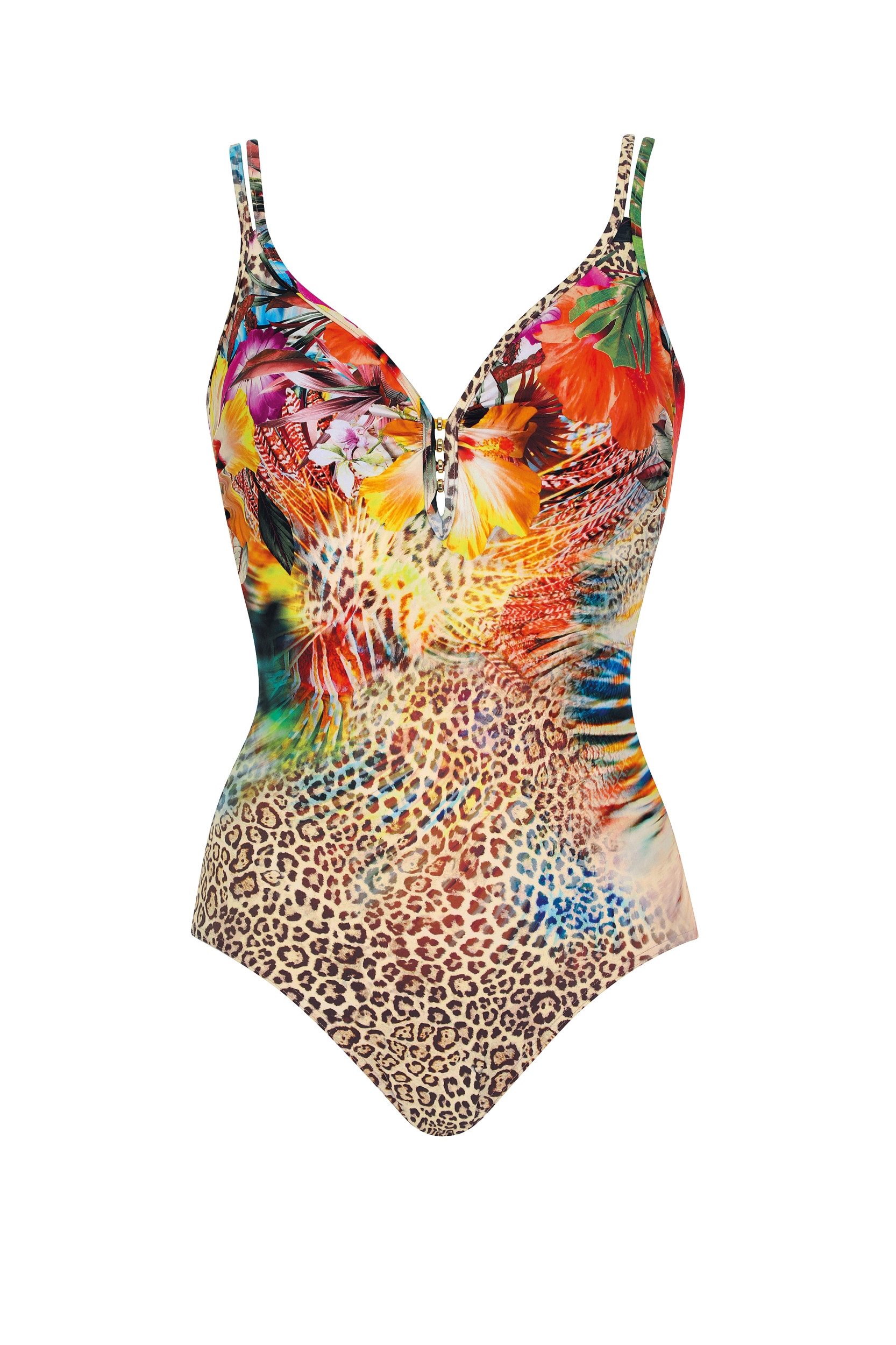 SUNFLAIR® Damen Badeanzug mit eingearbeiteten Softschalen. Die Träger sind verstellbar. Впередe Merkmale: tiefer Rückenausschnitt