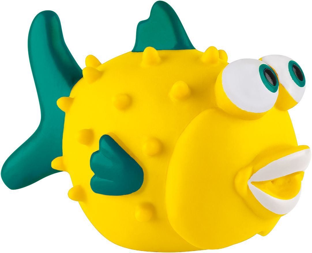 Die Wasserspritztiere von Sunflex Bubble Fish aus Kunststoff haben eine kleine Öffnung, aus der Wasser gespritzt werden kann. Zum Spielen und Plantschen