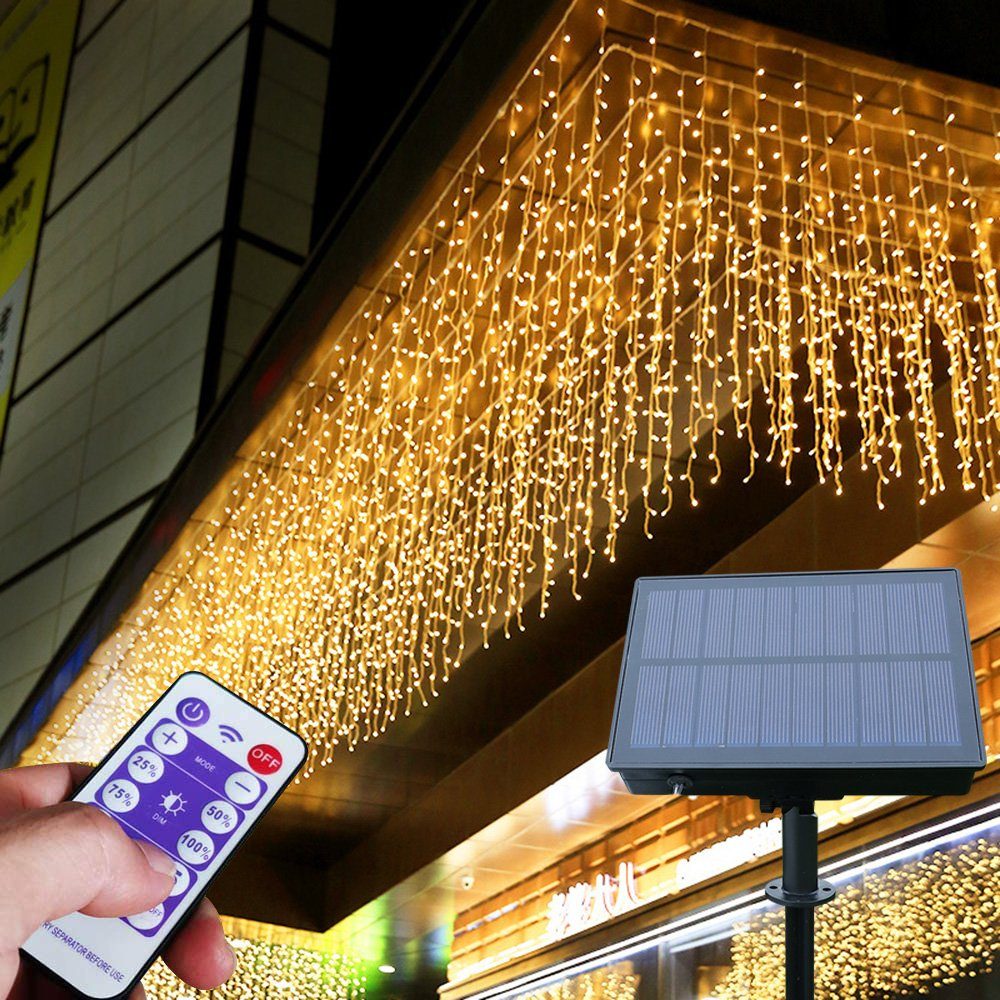 Lieferumfang | 1x Solarbetriebene LED Vorhang Lichter 1x Fernbedienung |