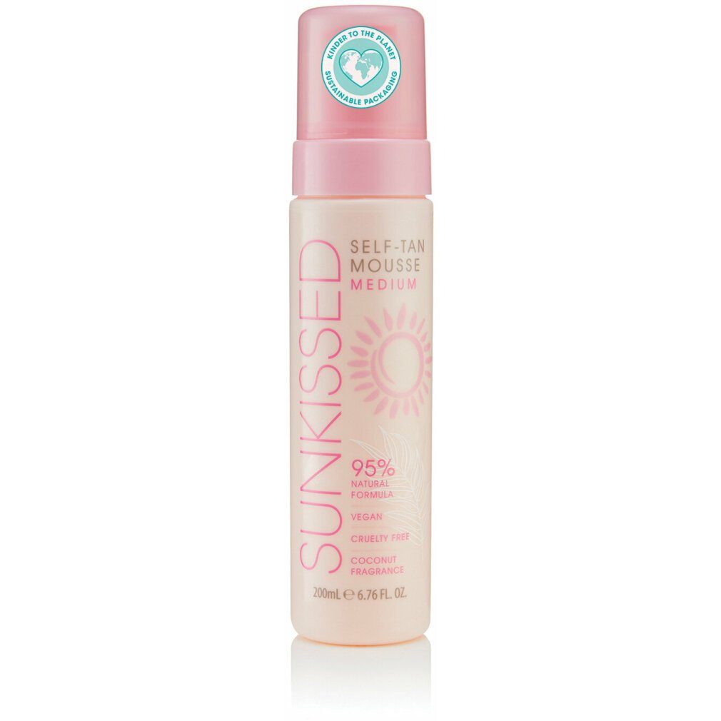 Sunkissed 95 Percent Natural Self Tan Mousse (200 ml) ist ein Bräunungsmousse, um auch in den Wintermonaten die Haut zum Strahlen zu bringen. Zudem versorgt das Mousse die Haut intensiv mit Feuchtigkeit. Die Formulierung ist ein kann auf dem gesamten Körper angewendet werde. Die Anwendung erfolgt nach der Reinigung der Haut. Es empfiehlt sich, die Haut vorab zu peelen, um ein natürliches, gleichmäßiges Ergebnis zu erzielen.