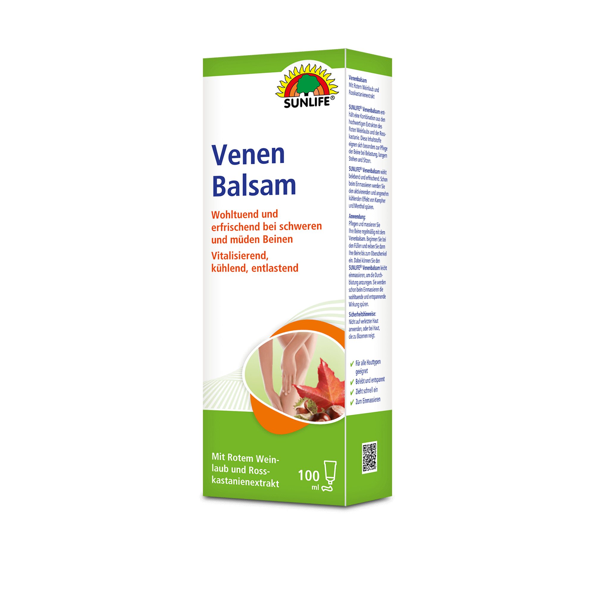 SUNLIFE® Venenbalsam enthält eine Kombination aus den hochwertigen Extrakten des Roten Weinlaubs und der Rosskastanie. Diese Inhaltstoffe eignen sich besonders zur Pflege der Beine bei Belastung, langem Stehen und Sitzen.