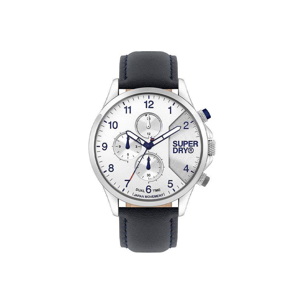 Die Superdry Hoxton Multi (Artikelnummer: SYG282UW) ist eine elegante und funktionale Uhr, die mit ihrem modernen Design besticht. Diese Uhr kombiniert ein robustes Gehäuse aus Legierung mit einem stilvollen schwarzen Lederarmband. Das weiße Ziffernblatt mit chronographischer Anzeige und klaren Linien verleiht ihr eine sportliche Note. Mit einer Wasserdichtigkeit von 50 m ist sie ideal für aktive Männer, die Stil und Funktionalität schätzen.