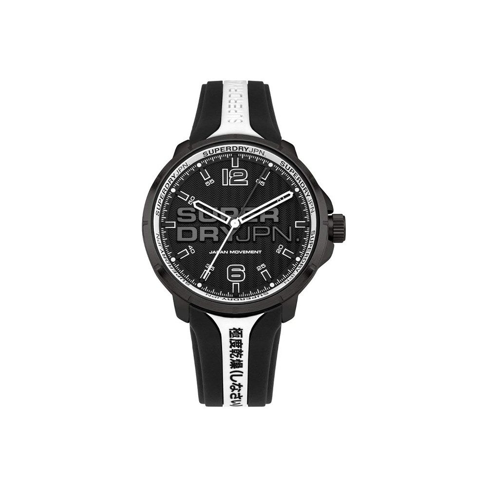 Superdry Kyoto (Artikelnummer: SYG216BW) besticht durch sein edles und zugleich sportliches Design. Mit einem Gehäuse aus schwarzem Edelstahl und einem stilvollen Ziffernblatt in Schwarz mit weißen Details ist diese Uhr ein echter Blickfang für den modernen Alltag.