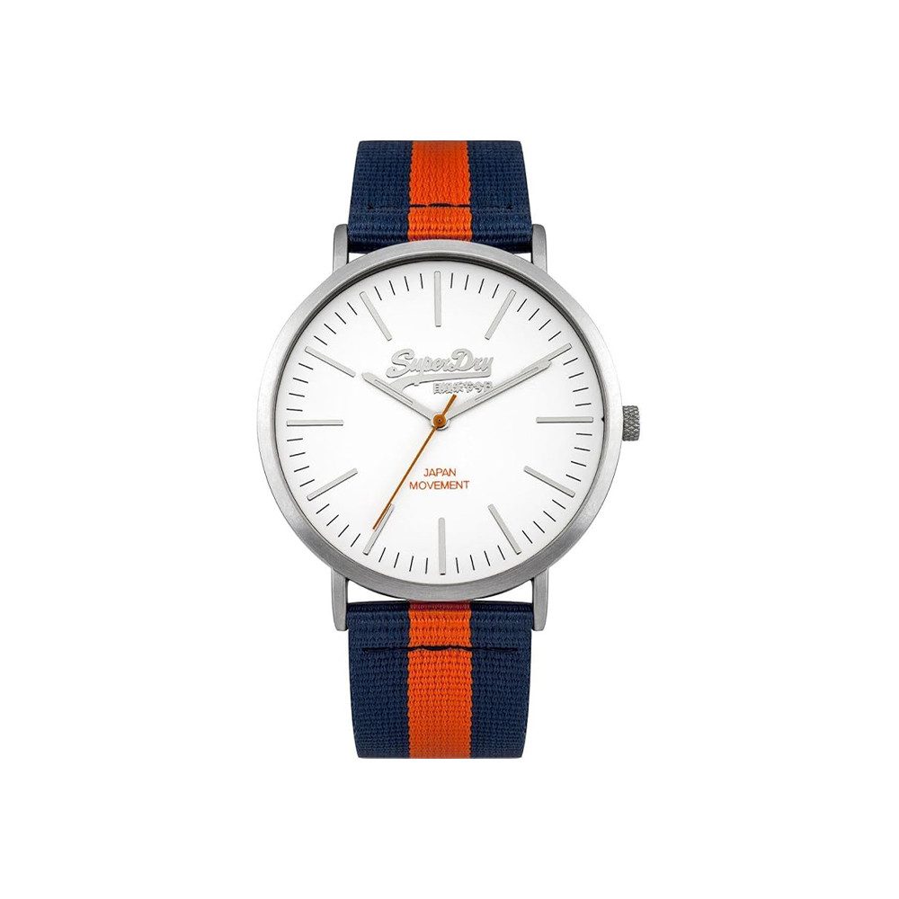 Die Superdry Oxford Herren Quarzuhr (Artikelnummer: SYG183UO) verbindet sportliches Design mit hoher Funktionalität. Sie präsentiert sich in ansprechenden Blau-, Orange- und Weißtönen, und das hochwertige Edelstahlgehäuse sorgt für Langlebigkeit. Mit einem farbenfrohen Nylon- und Lederarmband ist sie ideal für den täglichen Gebrauch und bietet eine Wasserdichtigkeit von 5 bar.