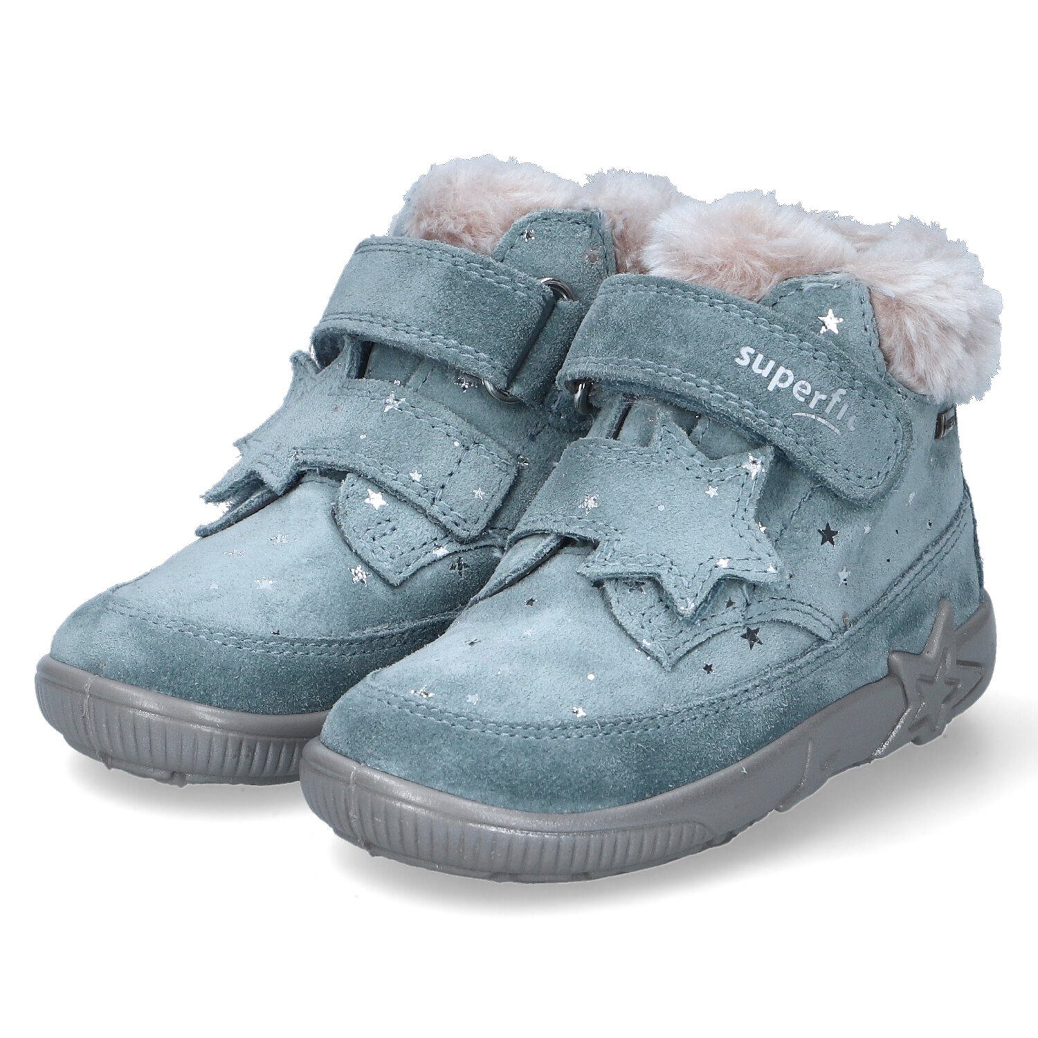 Superfit Mädchen Stiefeletten STARLIGHT Türkis Leder-Textil-Synthetik-Mix - wasserfest und atmungsaktiv (GORE-TEX) - Anziehlasche - glänzende Sterne - zwei Klettverschlussriemen (unterer mit Sternenform) - dezent Markendetails - verstärkter Zehen- und Fersenbereich - warmes Textilfutter - gepolsterte Wechseldecksohle - flexible, rutschhemmende Laufsohle mit leichtem Profil