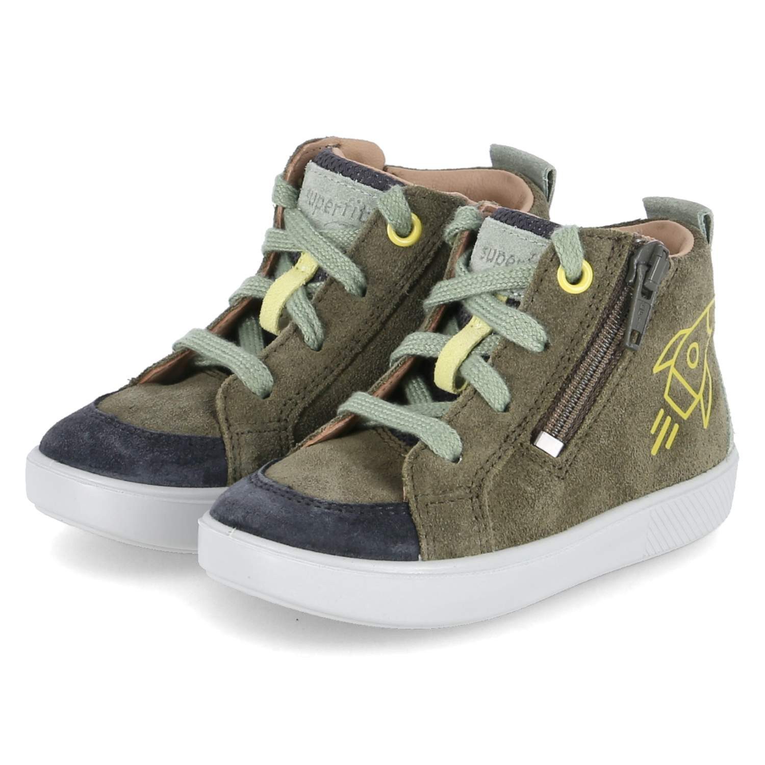Die grünen Superfit Kinder Halbschuhe SUPIES aus einem hochwertigen Rauleder-Textil-Mix sind die perfekte Wahl für kleine Entdecker. Diese Lauflernschuhe kombinieren ein verspieltes Design mit praktischen Funktionen, die optimal auf die Bedürfnisse Ihres Kindes abgestimmt sind. Die Schnürung und der Reißverschluss ermöglichen ein einfaches An- und Ausziehen sowie eine sichere Passform. Besonders auffällig ist die gelbe Raketen-Applikation auf dem Schaft, die den Schuhen einen fröhlichen und kindgerechten Look verleiht.