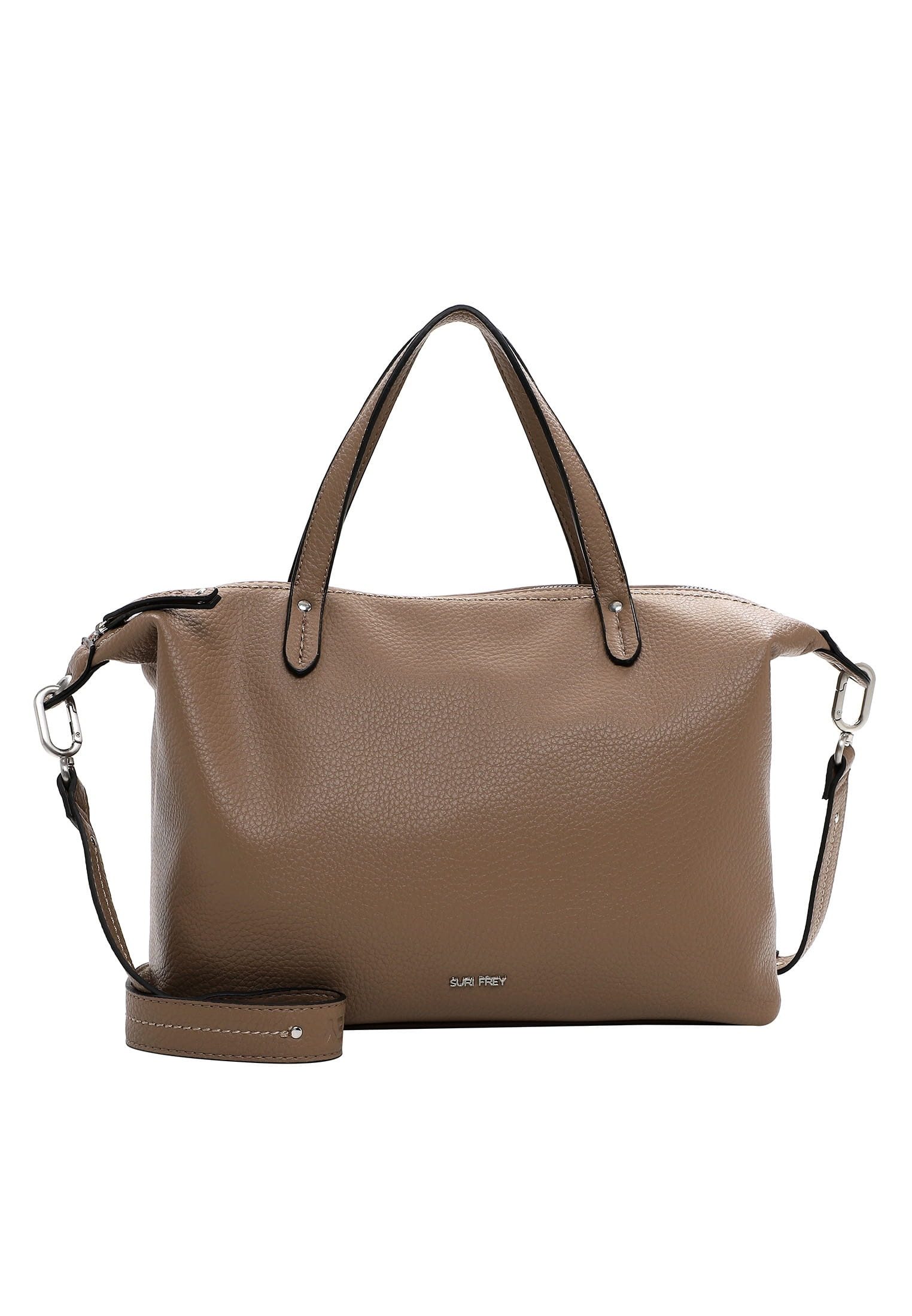 Persönlichkeit zeigen - mit SURI FREY Eine Handtasche zeigt die Persönlichkeit einer Frau. Ob hundertpro geordnet oder leicht chaotisch - sie wird einfach heißgeliebt! SFY Henny ist der wunderschöne Shopper in Echtleder-Optik mit Single Lettering, der echte Persönlichkeit ausstrahlt. Ob für Büro, Uni oder in der Freizeit - mit ihm lässt sich jedes Abenteuer bestreiten. Gefertigt ist das Modell, das sich mit einem Reißverschluss verschließen lässt, aus Feinsynthetik. Durch das Material ist es angenehm im Griff. Die Echtleder-Optik und das Uni-Design sind fein gearbeitet und verleihen dem Shopper einen edlen Look. Wer viel auf Achse ist, will einfach immer einen besonderen Auftritt hinlegen. SURI FREY hat genau die Accessoires, die so gut gefallen und die jedes Outfit gekonnt vervollständigen. Ordnung ist das halbe Leben. Ein übersichtliches Hauptfach sind in der Tasche integriert. Ein Reißverschluss-Fach auf der Rückseite sorgt für zusätzlichen Stauraum und ermöglicht den schnellen Zugang zu Dingen, die man zügig parat haben möchte. Das Modell SFY Henny ist von der Haptik eher weich und daher wirklich angenehm zu tragen. Einen besonderen Akzent setzt Single Lettering. Mit den zwei Tragegriffen wird das neue Lieblingsstück ganz locker über der Schulter getragen. Viel Platz für alles, was man als Frau so mit sich herumträgt, bietet der Shopper.