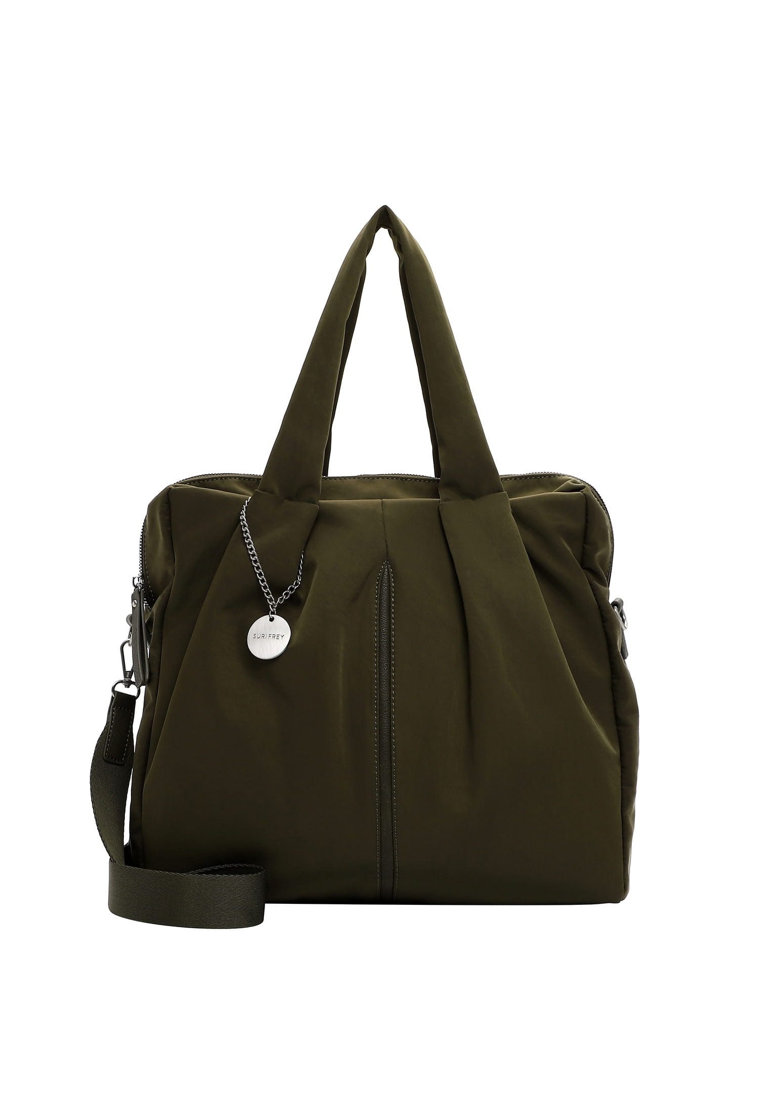 Selbstbewusst und "frey" - SURI FREY Natürlich, selbstbewusst und brillant - so zeigen sich Frauen im Alltag. Übrigens am liebsten mit ihrer Lieblingstasche. SFY Pauly ist der wunderschöne Shopper in Uni-Design mit Reißverschluss, der wahre Persönlichkeit ausstrahlt. Ob für Office, Schule oder in der freien Zeit - mit ihm lässt sich einfach jedes Abenteuer bestreiten. Das Modell besteht aus Feinsynthetik und lässt sich mit einem Reißverschluss verschließen. Ein optisches Highlight ist der Shopper mit Nylon-Optik und dem Uni-Design. Die tollen Accessoires von SURI FREY stehen für Lebenslust, Freiheit und Offenheit - genau das, was Frauen mit Selbstbewusstsein ausmacht. Der Shopper hat ein übersichtliches Hauptfach und eine Reißverschluss-Mittelwand, die praktisch für die sichere Aufbewahrung wichtiger Dinge ist. Aufgrund des Rückfaches mit Reißverschluss hat man zusätzlichen Stauraum und zügigen Zugriff auf alle relevanten Dinge. Für alle, die eine weiche Haptik lieben - SFY Pauly ist angenehm anschmiegsam. Ein Logo-Patch schmückt optisch und hebt den einzigartigen Look dieses neuen Favoriten hervor. Über der Schulter ist dieses Modell den zwei Tragegriffen zu tragen. Im hübschen Shopper ist einfach Platz für alles - sogar für ein kleines Mitbringsel zur Einweihungsparty oder ein paar Pralinen für die Oma.