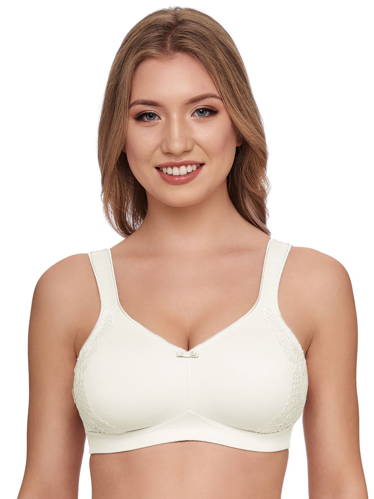 Die Brüste wirken durch diesen BH optisch verkleinert. Einfach anziehend: Dieser BH glänzt unter der Tunika genauso wie unter dem Pullover.