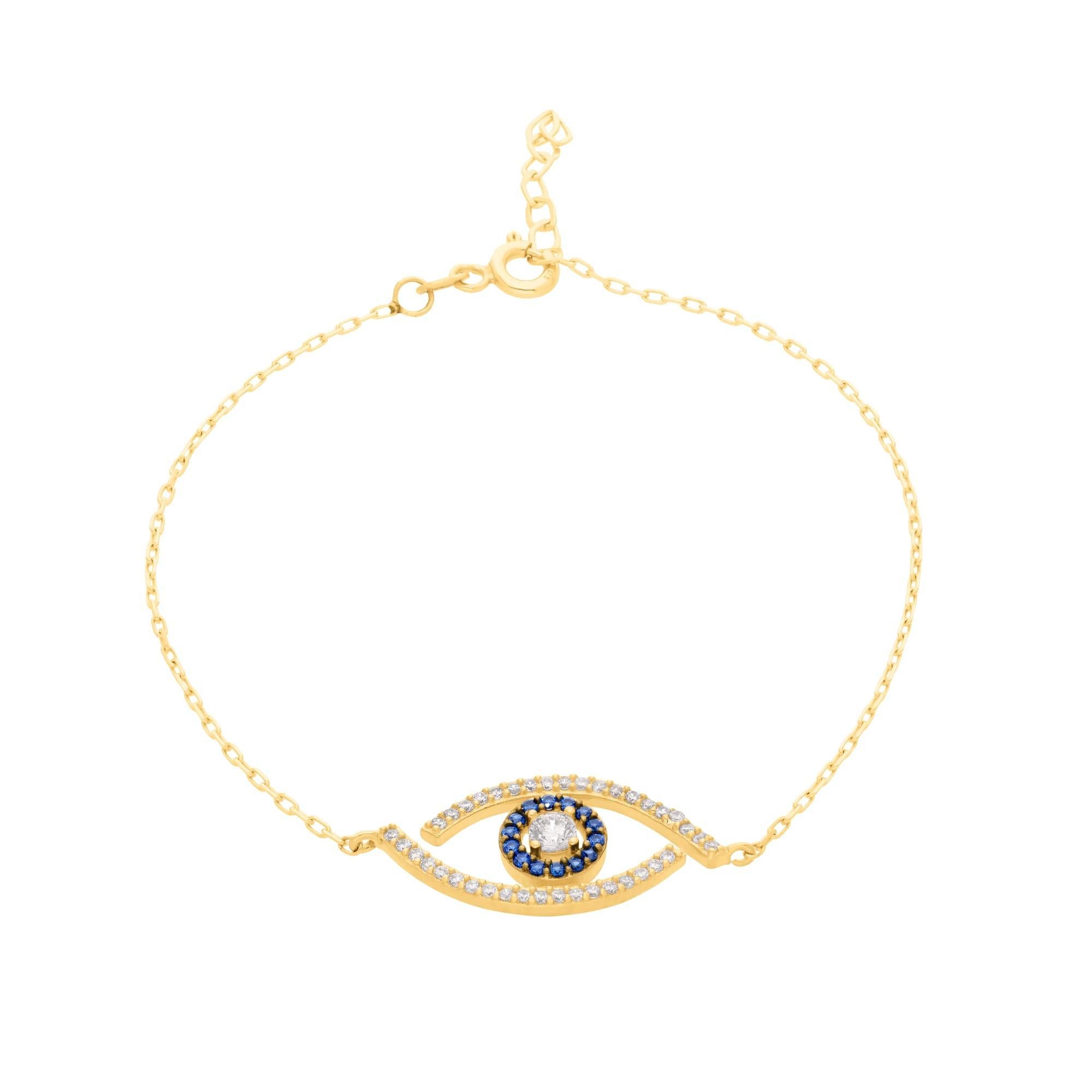 Absolute Raffinesse zeichnet dieses Evil Eye Armband in 375 Gold-glänzendem Finish aus. Das zarte Armband ist besetzt mit vielen hochwertigen Zirkonia Steinen.