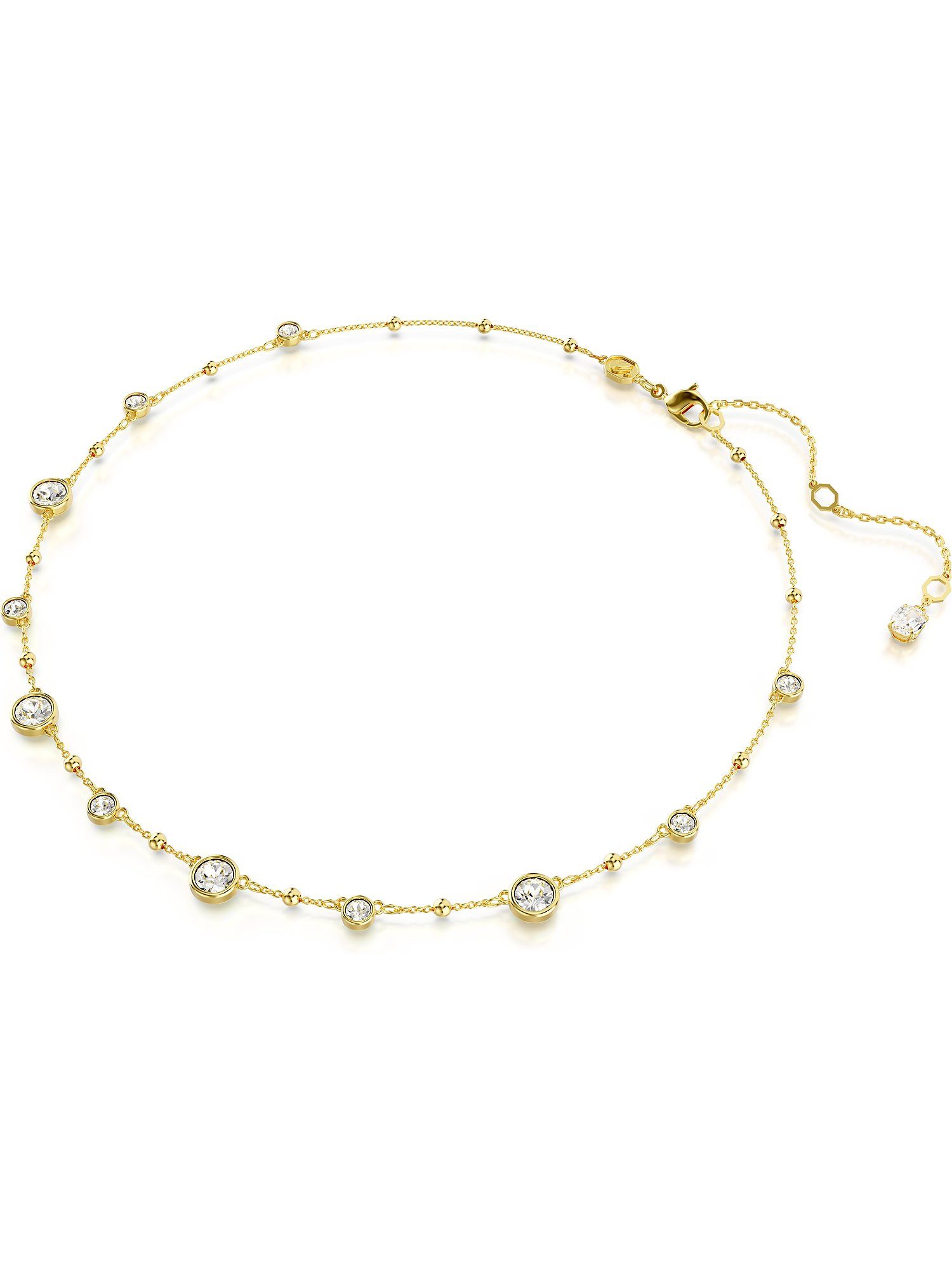Zeige deinen individuellen Style mit der Metall-Collierkette aus der Imber-Kollektion von Swarovski Glitzerndes Highlight ist der Besatz mit Swarovski-Kristall, der das Licht einfängt und die Blicke auf sich zieht. Sie ist als Ankerkette gearbeitet und hat eine Длина von 38 cm, damit liegt sie eher nah am Hals an: Perfekt für engere Ausschnitte und Layering-Looks! Die Oberfläche ist hochwertig und haltbar in der Farbe Weiß vergoldet und glänzend. Durch den praktischen Karabinerverschluss kannst du die Kette leicht anlegen und sicher tragen.